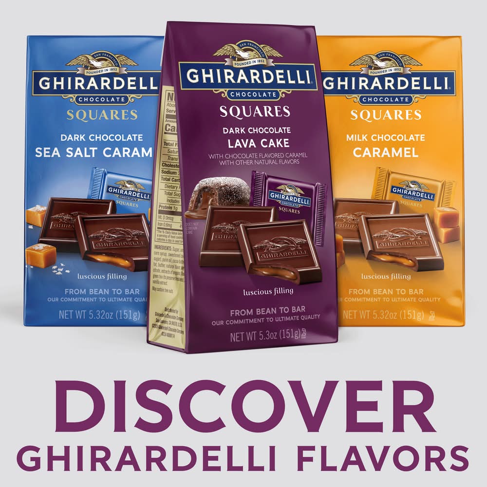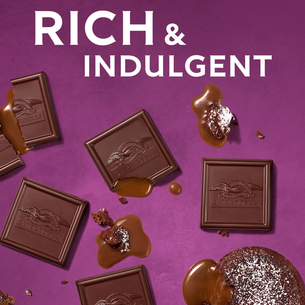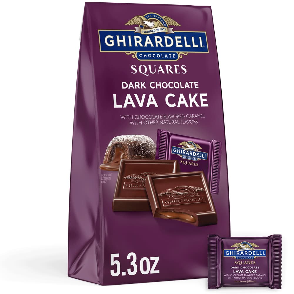 Unwrap GHIRARDELLI Dark Chocolate Lava Cake SQUARES for moments of pure indulgence. GHIRARDELLI SQUARES bring a touch of sweetness to your day, whether savored on their own or paired with your favorite treat. Let each bite of rich, slow-melting dark chocolate and luscious chocolate-flavored caramel filling transport you to dessert heaven. Flavor: Dark chocolate