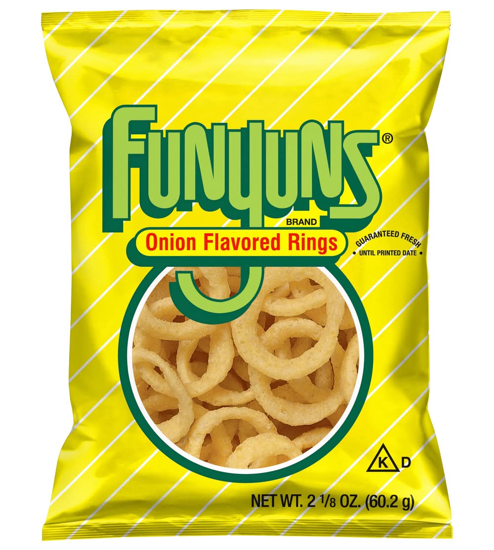 For a change of pace that's fun and deliciously different - FUNYUNS brand Onion Flavored Rings are the snack. FUNYUNS brand Onion Flavored Rings crunch with the zesty flavor of onion coupled with the crispy texture and shape of an onion ring. Includes 1 (2 oz) bag of Funyuns Onion Flavored Rings FUNYUNS brand Onion Flavored Rings crunch with the zesty flavor of onion coupled with the crispy texture and shape of an onion ring. Made in USA Flavor: Onion