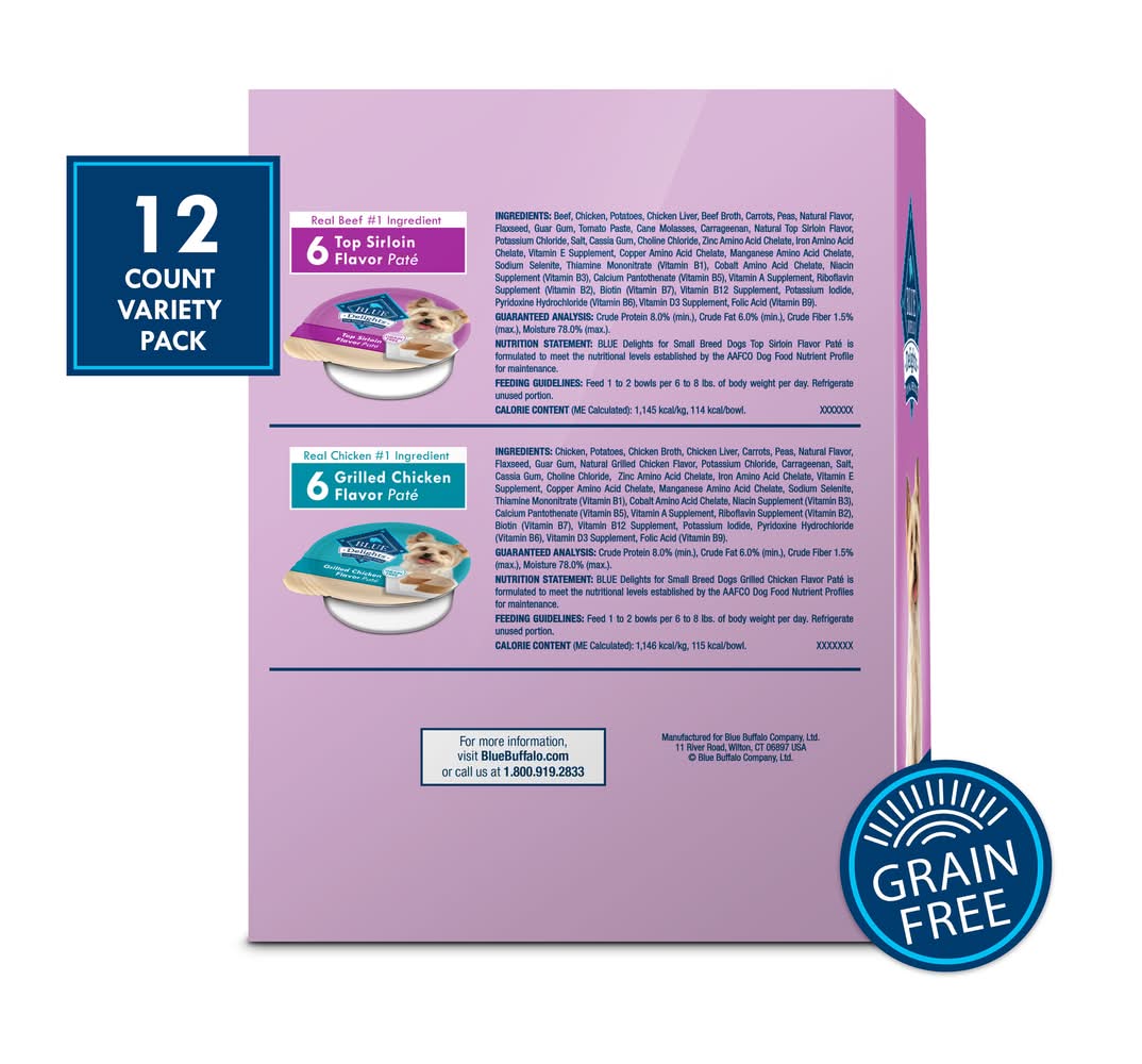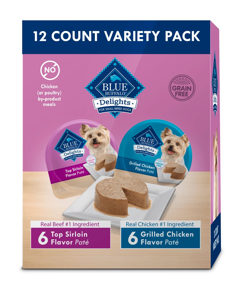 Blue Buffalo Delights Small Breed Wet Pate Dog Food Cups Grilled Chicken & Top Sirloin (3.5 oz, 12 ct)
