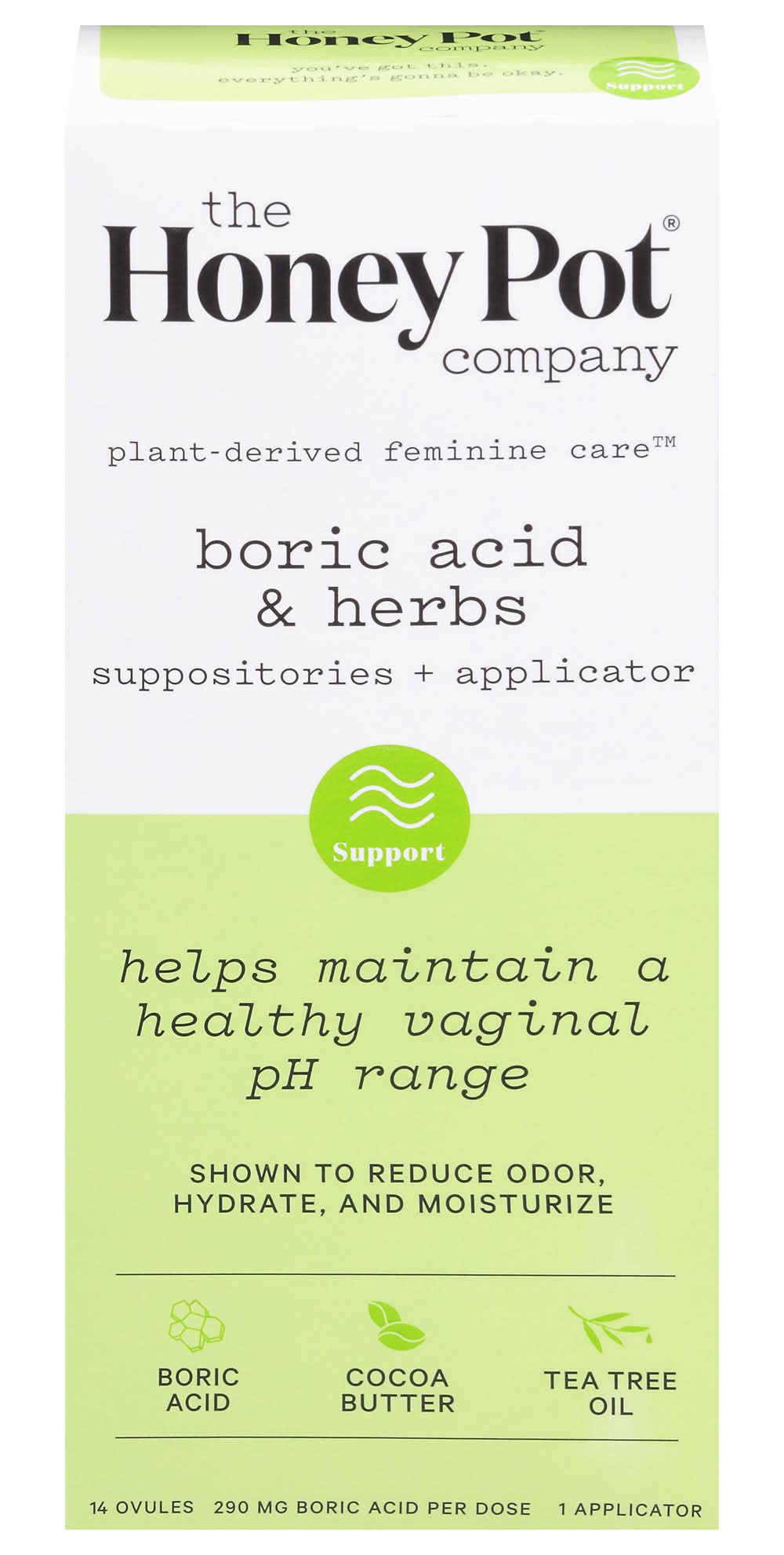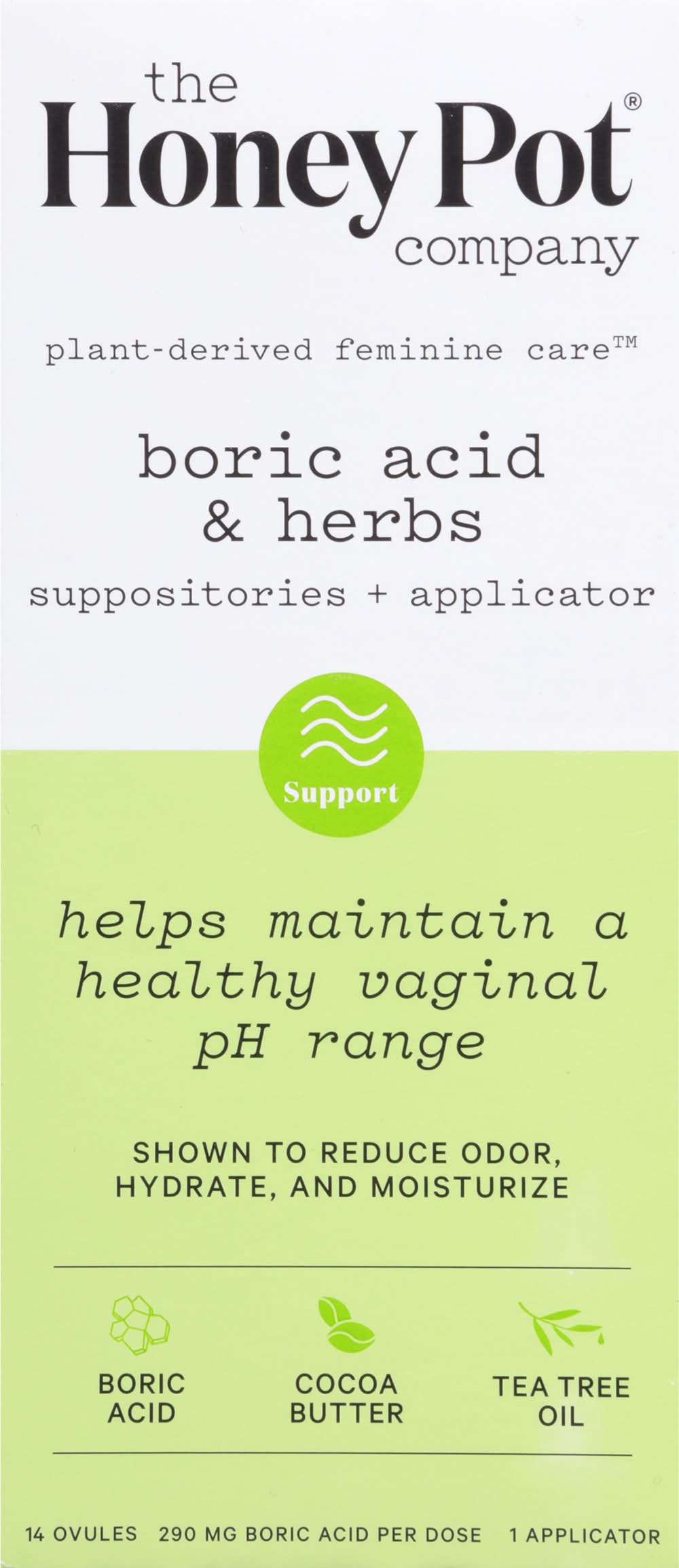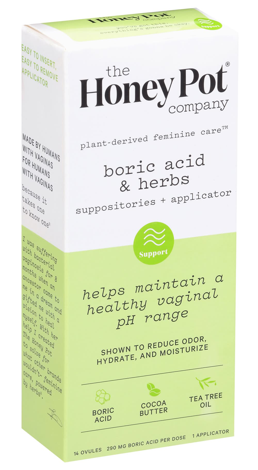 The Honey Pot Boric Acid & Herbs Suppositories + Applicator (14 ct)