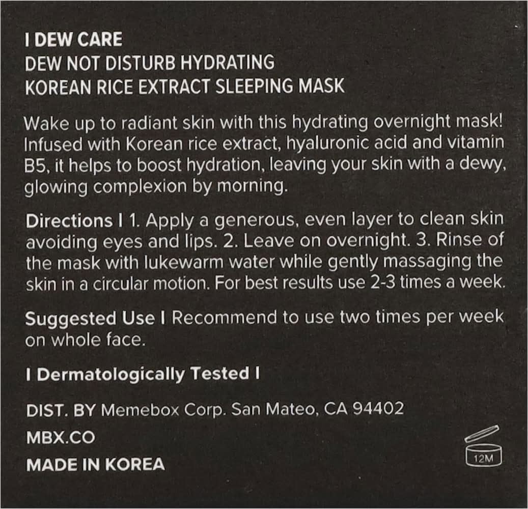 Sleeping Mask, Hydrating, Korean Rice, Dew Not Disturb