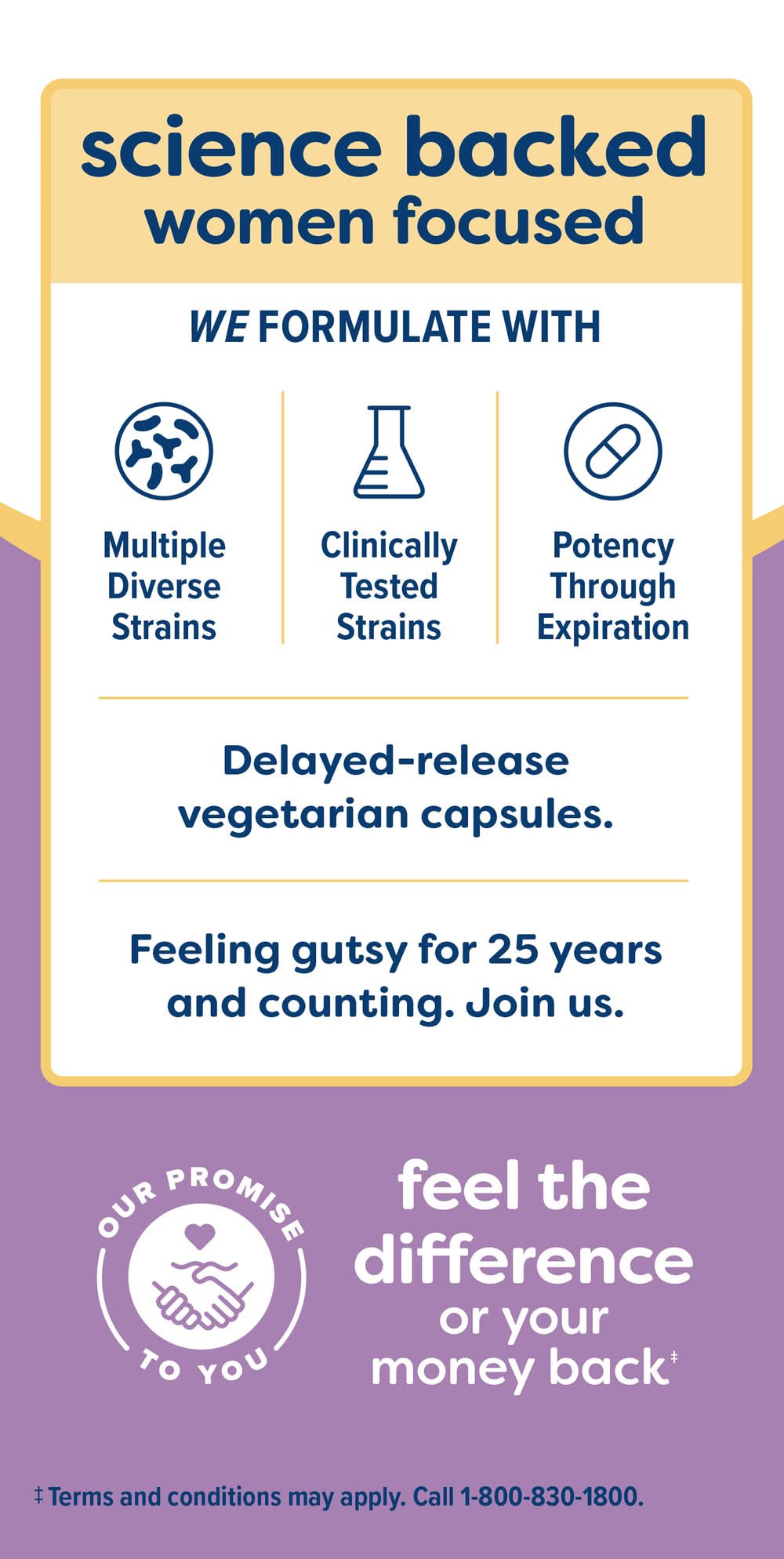 Ingredients: Bifidobacterium lactis BI-04, ® Bifidobacterium lactis DSM 15954, Bifidobacterium infantis Bi-26™, Lactobacillus reuteri RC-14, ® Lactobacillus plantarum Lp-115, ® Lactobacillus rhamnosus GG, Lactobacillus rhamnosus GR-1, ® Lactococcus lactis LI-23, ™ Lactobacillus casei Lc-11, ® Lactobacillus paracasei Lpc-37, ® Lactobacillus acidophilus La-14, ® Lactobacillus brevis Lbr-35™. Other ingredients: Microcrystalline cellulose, capsule (hypromellose, gellan gum), and medium chain triglycerides. Contains: Milk, Gluten, Soybeans