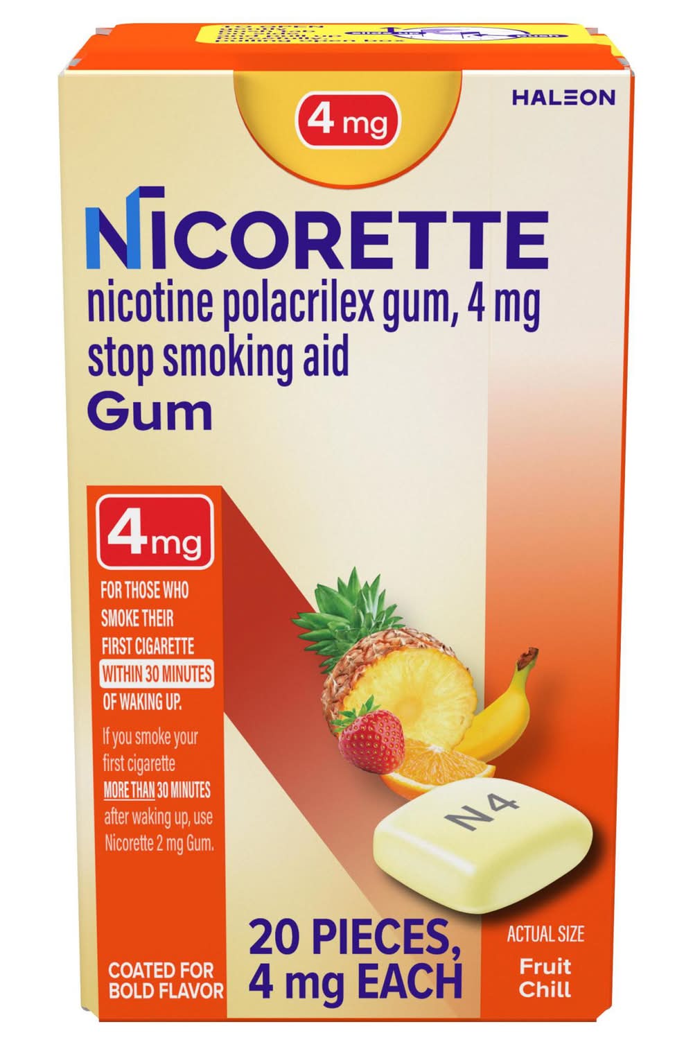 Nicorette Nicotine Polacrilex Stop Smoking Aid Gum 4 mg, Fruit Chill (20 ct)