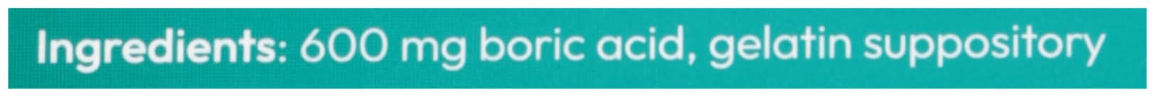 Ingredients: 600 mg Boric Acid, Gelatin Suppository