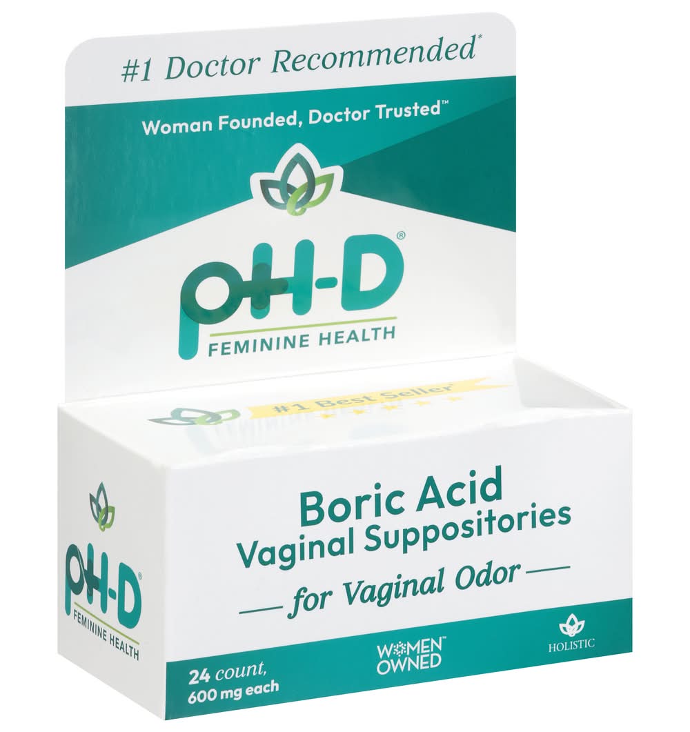 pH-D Boric Acid Vaginal Suppositories 600 mg, Women (24 ct)