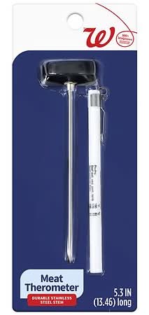 Crafted with a durable stainless steel stem, this meat thermometer is designed to measure temperatures ranging from 0 to 220 degrees Fahrenheit. The stem extends 5.3 inches in length, providing ample reach for various cooking applications. Each unit is manufactured in China.