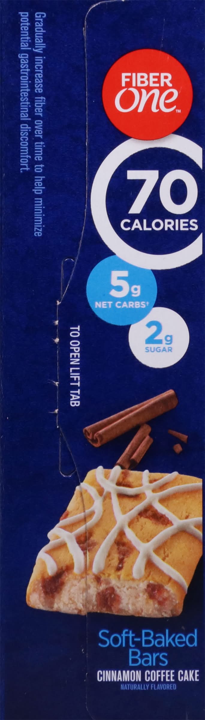 Take a big bite of heaven with 70 calorie cinnamon coffee cake. Indulge in the delicious combination of a soft moist texture, a cinnamon coffee cake flavor and a luscious drizzled topping. Each bar is 70 calories and provides 21% of the daily value of fiber. Give in to temptation, satisfy your sweet craving anytime and still stay on track. Naturally flavored. Made in UNITED STATES • Flavor: Cinnamon coffee cake • Pack size: 6 • General mills sales, inc., Minneapolis,55440,MN,USA