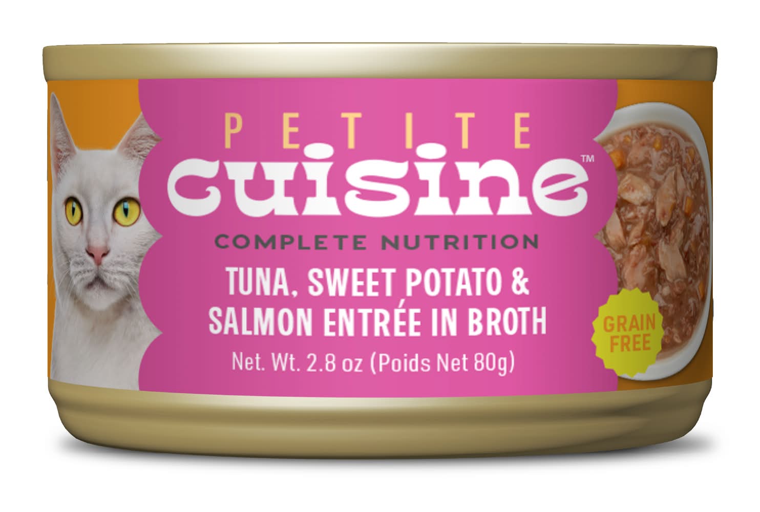 Petite Cuisine Aunt Molly's Tuna Sweet Potato and Salmon Entrée in Broth Cat Food (2.8 oz)