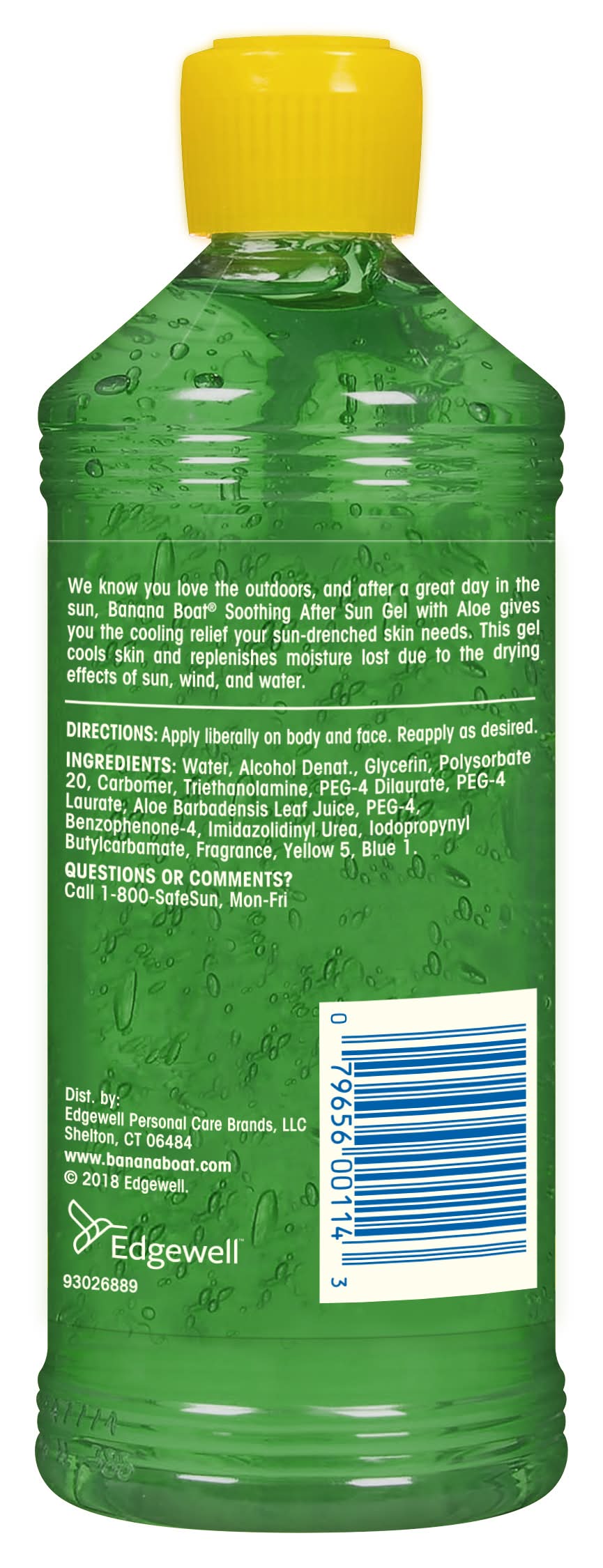 Banana Boat Soothing After Sun Gel helps replenish moisture and cool your skin after having fun in the sun! Formulated with aloe, you can feel confident that you're giving your sun-drenched skin the relief it needs. Protect the fun on earth! Formulated with Aloe & Vitamin E- to preserve your skin and extend your tan. Helps Replenish Moisture in Dry Skin- non-greasy formula keeps your skin smooth & soft. Relief Your Sun-Drenched Skin Needs- replenishes moisture lost due to the drying effects of Edgewell Personal Care Brands, LLC, Shelton, CT 06484