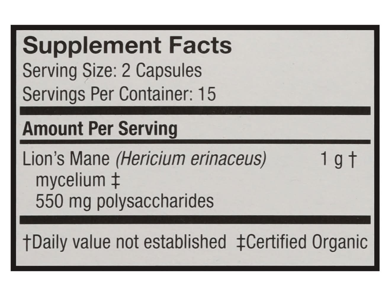 Lion's Mane, Memory & Nerve Support, Vegetarian Capsules