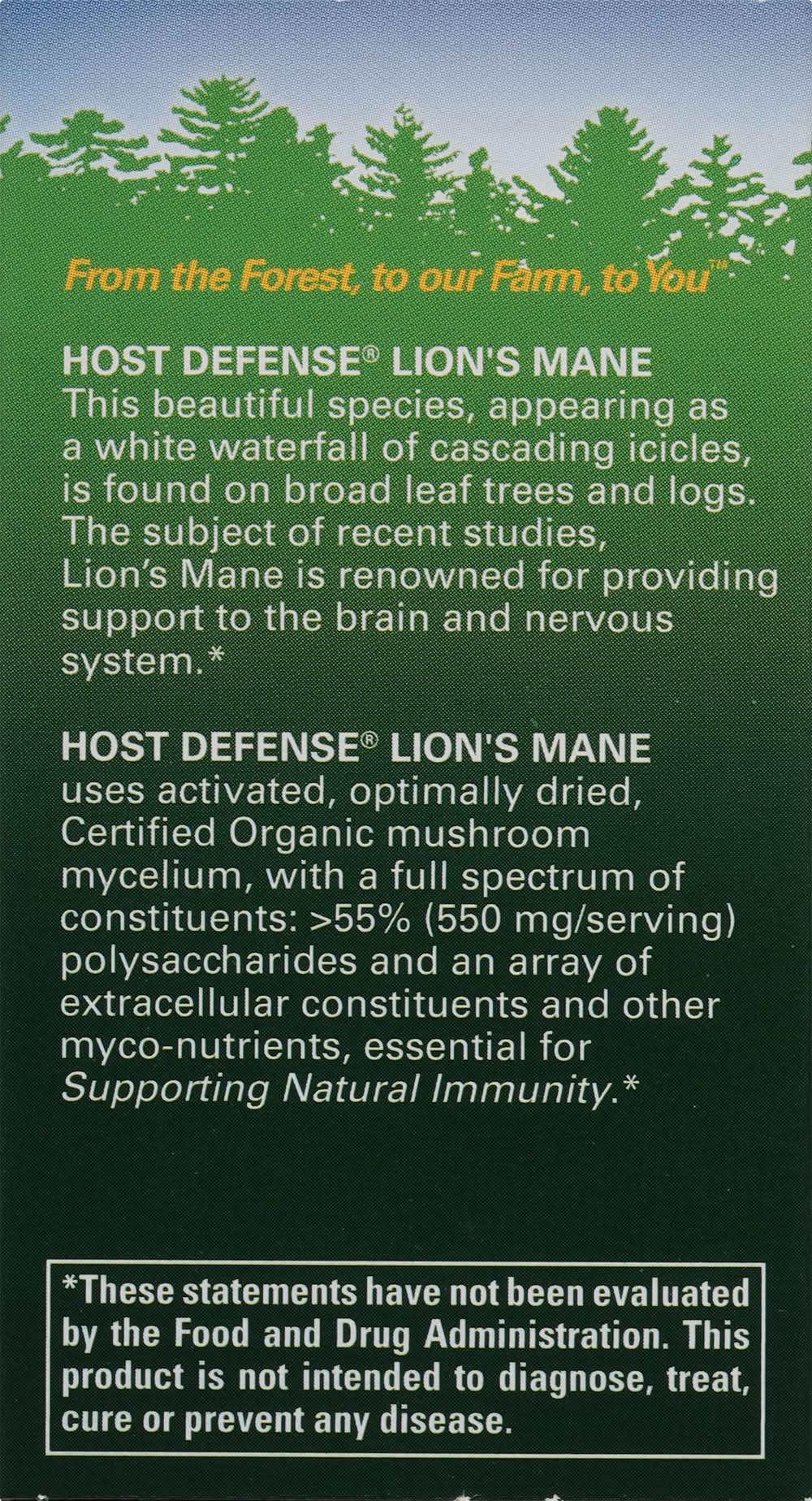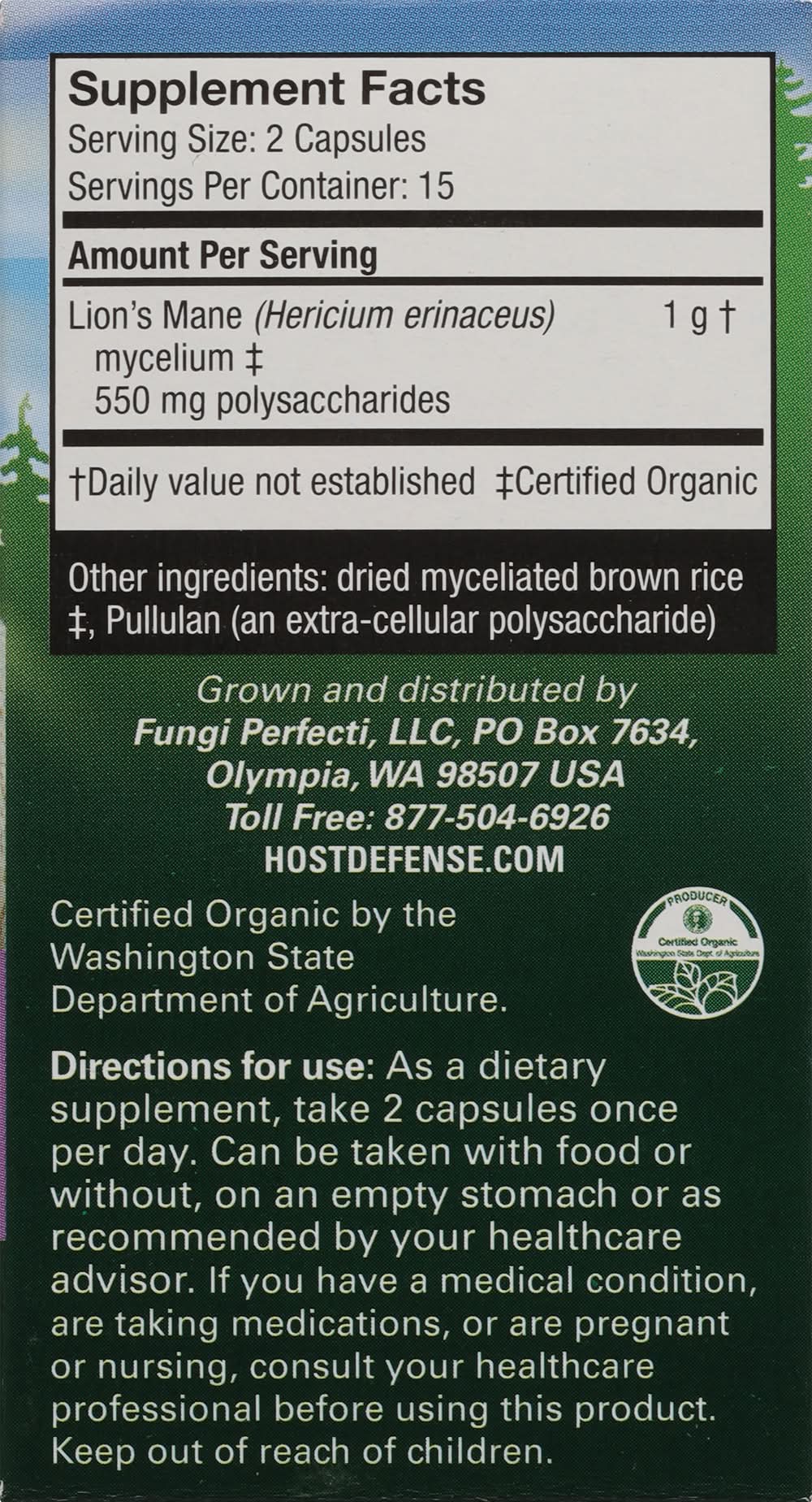 Host Defense Memory & Nerve Support Lion's Mane Vegetarian Capsules (1.92 oz)