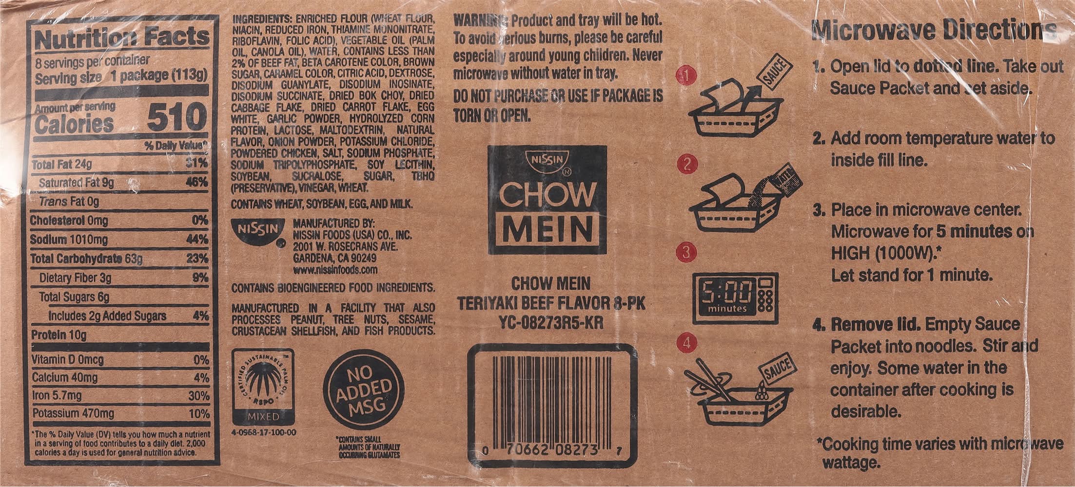 Nissin Chow Mein Noodles, Teriyaki Beef (32 oz, 8 ct)