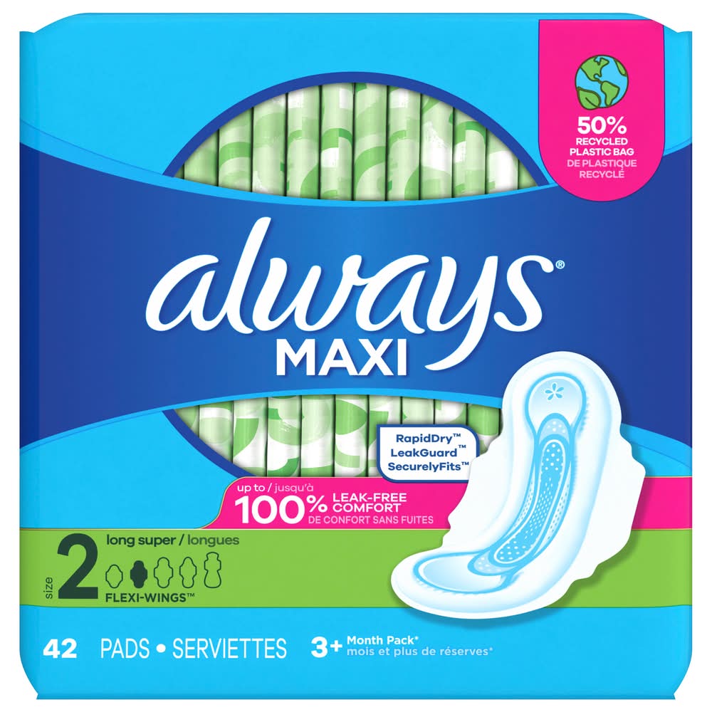 Always Unscented Maxi Daytime Pads With Wings, Women, 2 (42 ct)