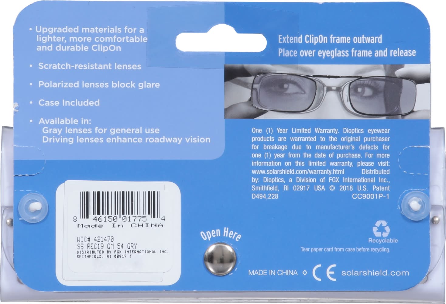 Solar Shield Polarized Clipons Sunglasses, Gray 54 Rec19
