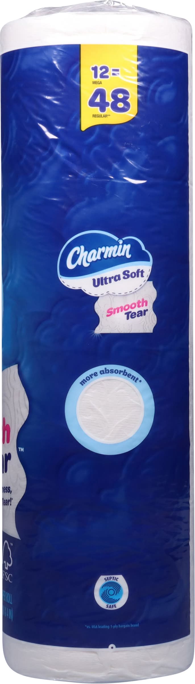 Charmin Ultra Soft Smooth Tear 2 Ply Bathroom Tissue Mega Rolls, 3.92x4 in (12 ct)