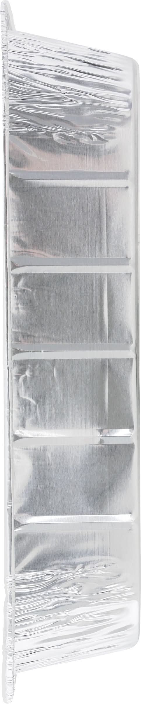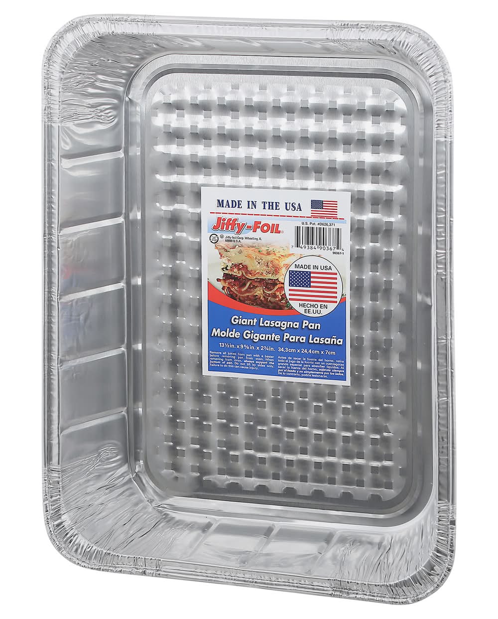 13-1/2 in x 9-5/8 in x 2-3/4 in (34.3 cm x 24.4 cm x 7 cm) Kosher Made in United States Jiffy-Foil Corp., Wheeling,IL,60090.