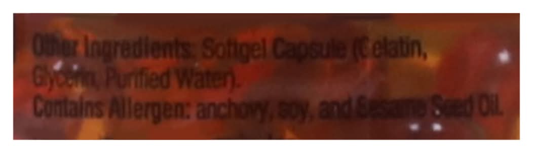 Ingredients: Other Ingredients: Softgel Capsule (Gelatin, Glycerin, Purified Water) Contains: Fish, Anchovy, Soybeans, Sesame