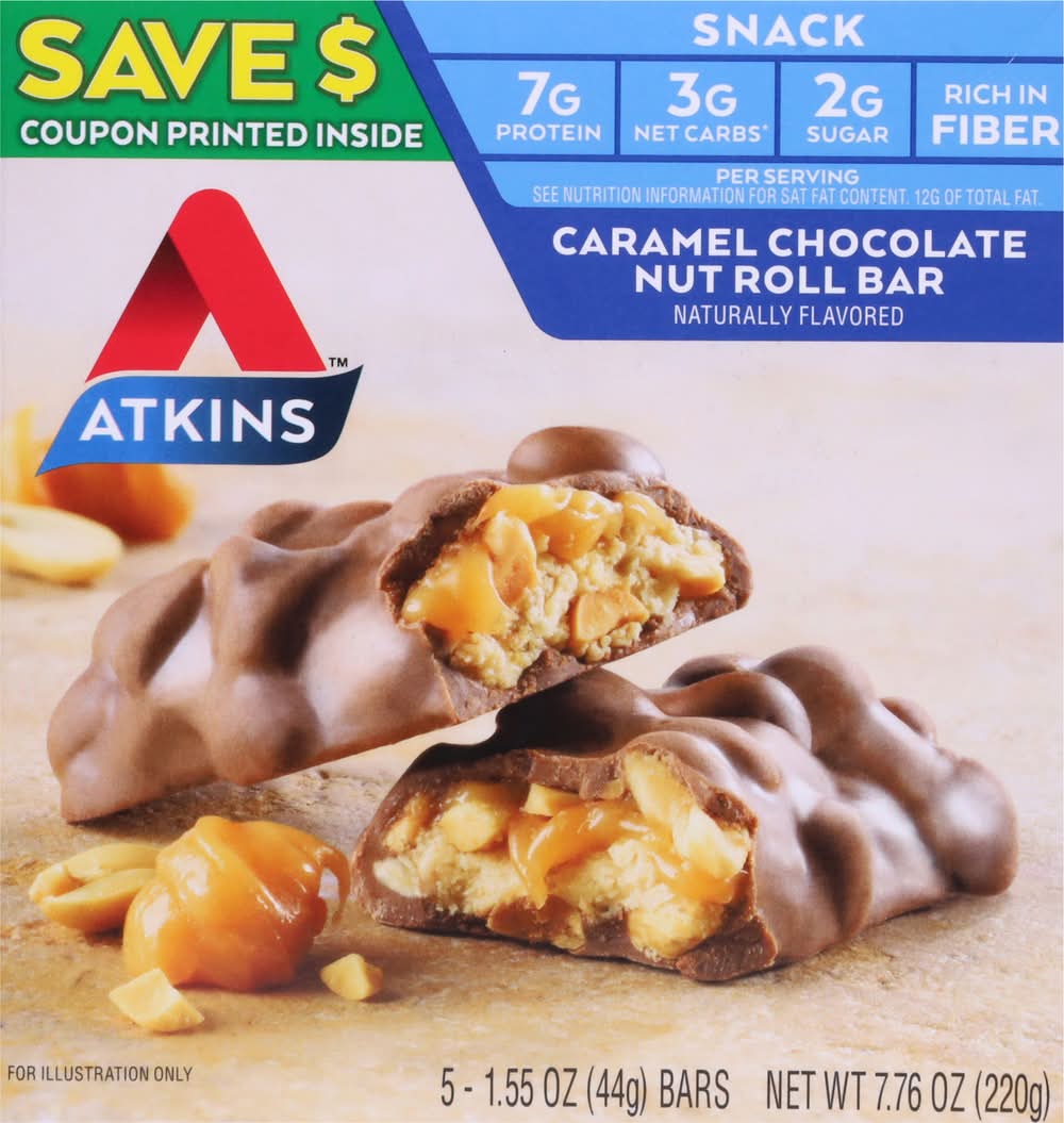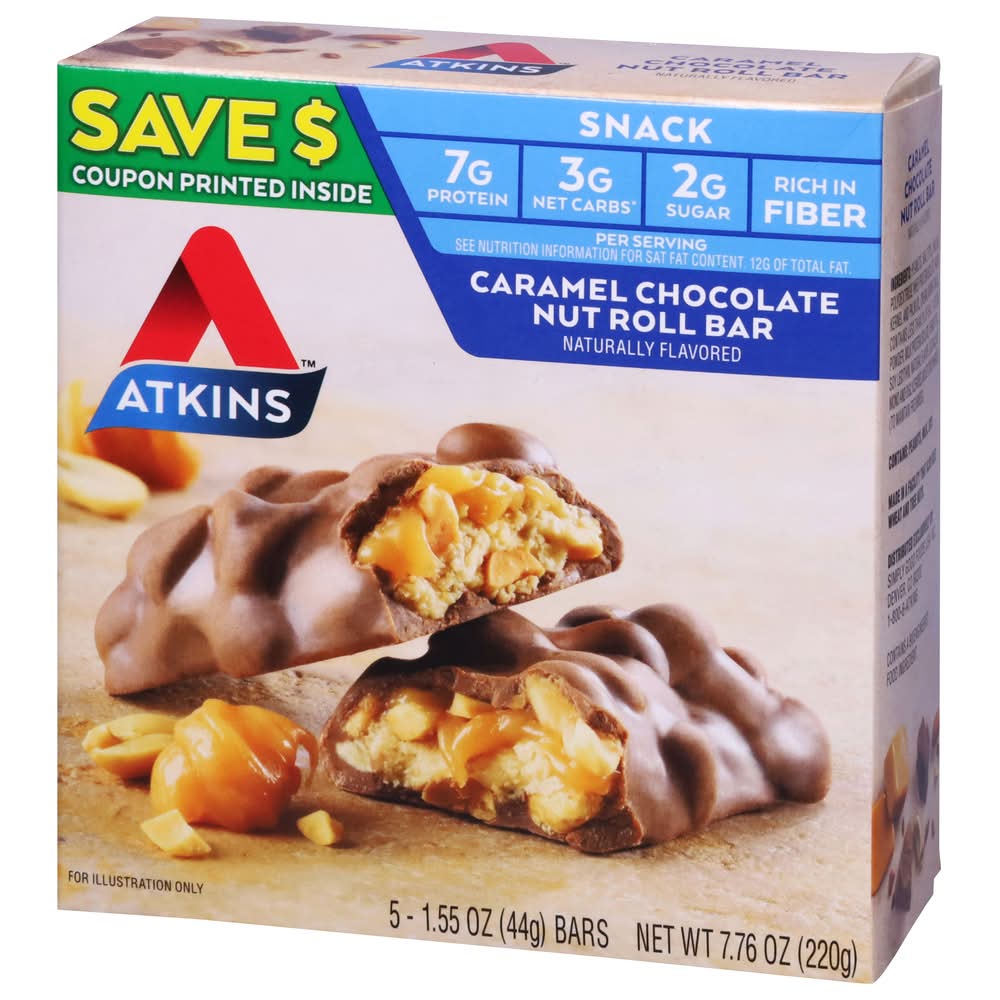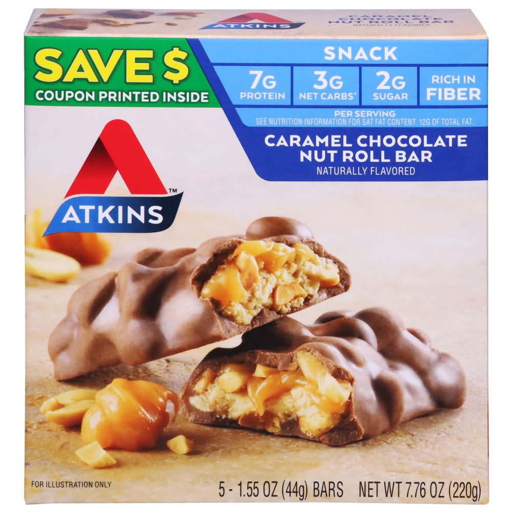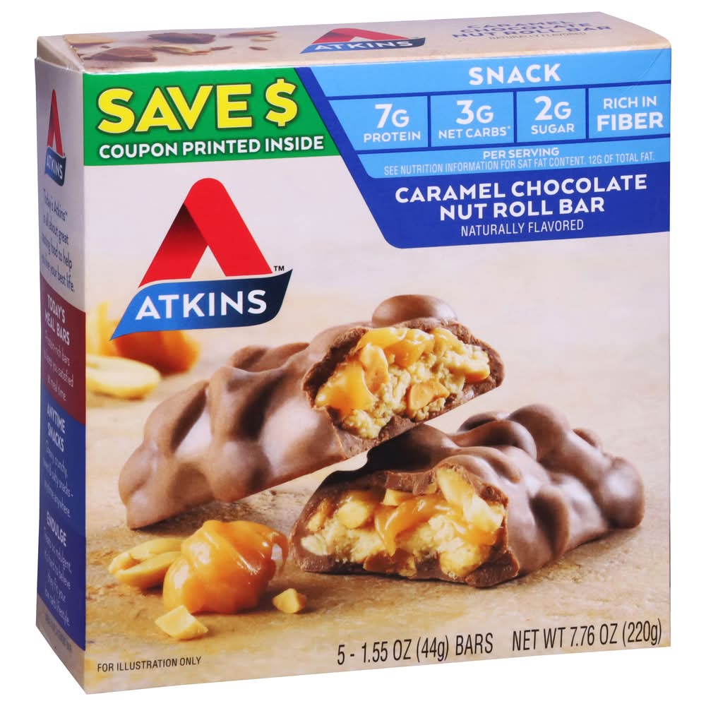 Atkins Nut Roll Snack Bars, Caramel Chocolate (5 x 44 g)
