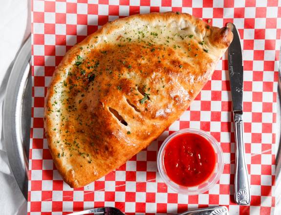 Cheese zone with pepperoni, sausage, spinach, mushroom, and onion. Served with a side of marinara.