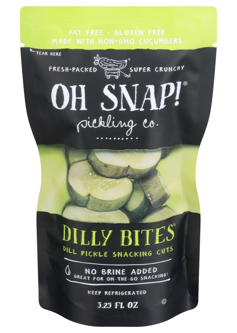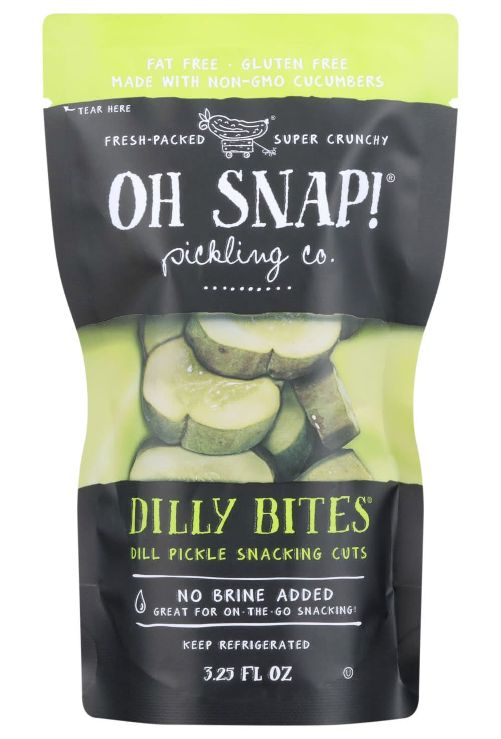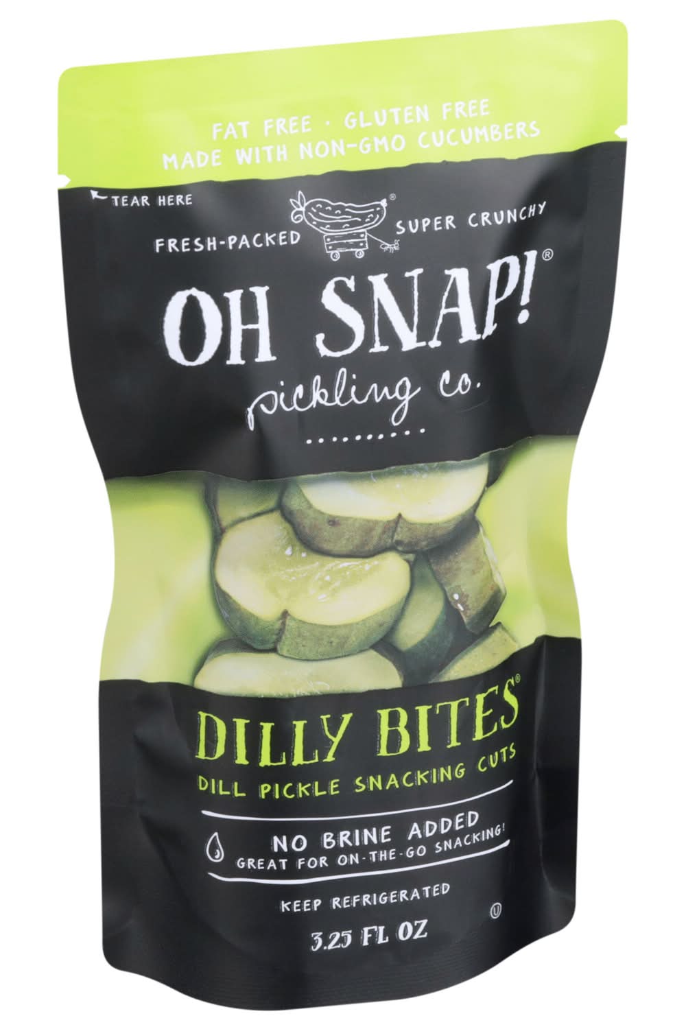 OH SNAP!® Dilly Bites® are the original and bestselling fresh dill pickle snacking bites. Perfectly crisp for a satisfying crunch and packed with dill flavor. OH SNAP!® is pickling made perfect. We’re passionate about making grab-n-go snacks that are seriously crunchy, seriously delicious and gluten-free, fat-free and non-GMO. Our innovative process means Oh Snaps stay cold from the moment they’re picked to the moment you pick them up, ensuring peak freshness and the perfect crunch. Then we pack ‘em with no additional brine so there’s no mess and no stress when you’re snacking on-the-go. It’s time to snap out of the ordinary with OH SNAP!® Dilly Bites®. The perfect snack, in a snap. • Brand: Oh snap! • gluten-free • Number of servings: 1 • Packaging: Reusable
