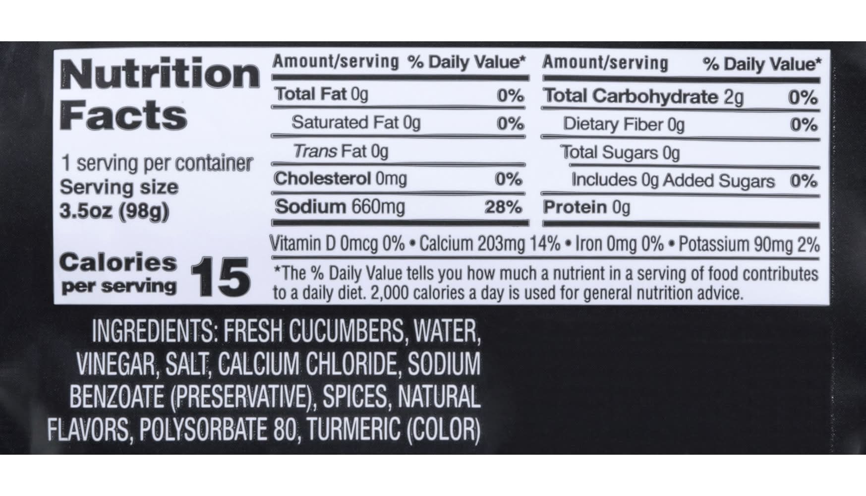 Ingredients: Vinegar, Calcium Chloride, Sodium Benzoate (Preservative), Spices, Natural Flavors, Polysorbate 80, Turmeric (Color), Contains: 'Gluten Free From'