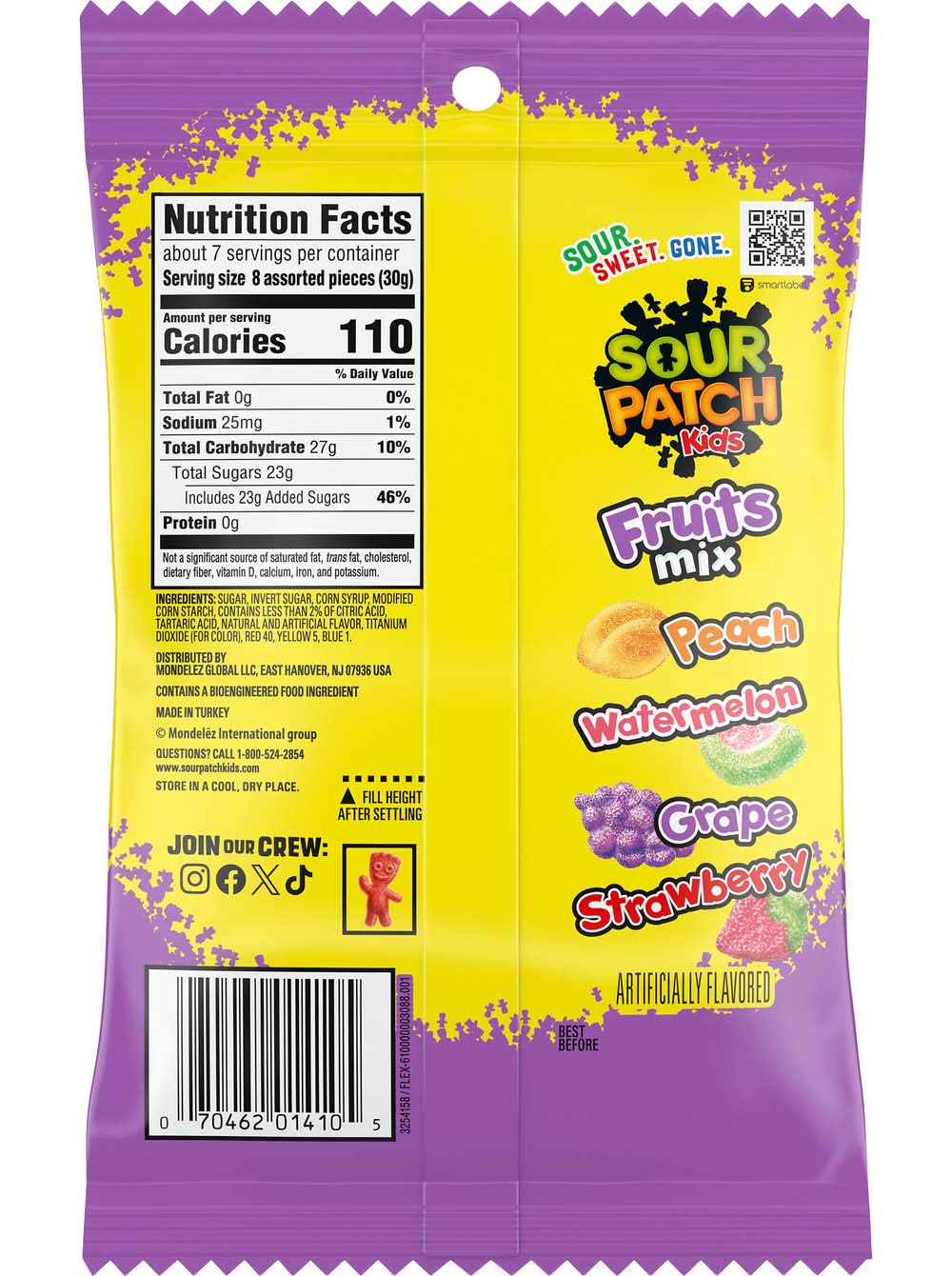 Sour Patch Kids Fruit Mix Soft & Chewy Candy, Assorted (7.35 oz)