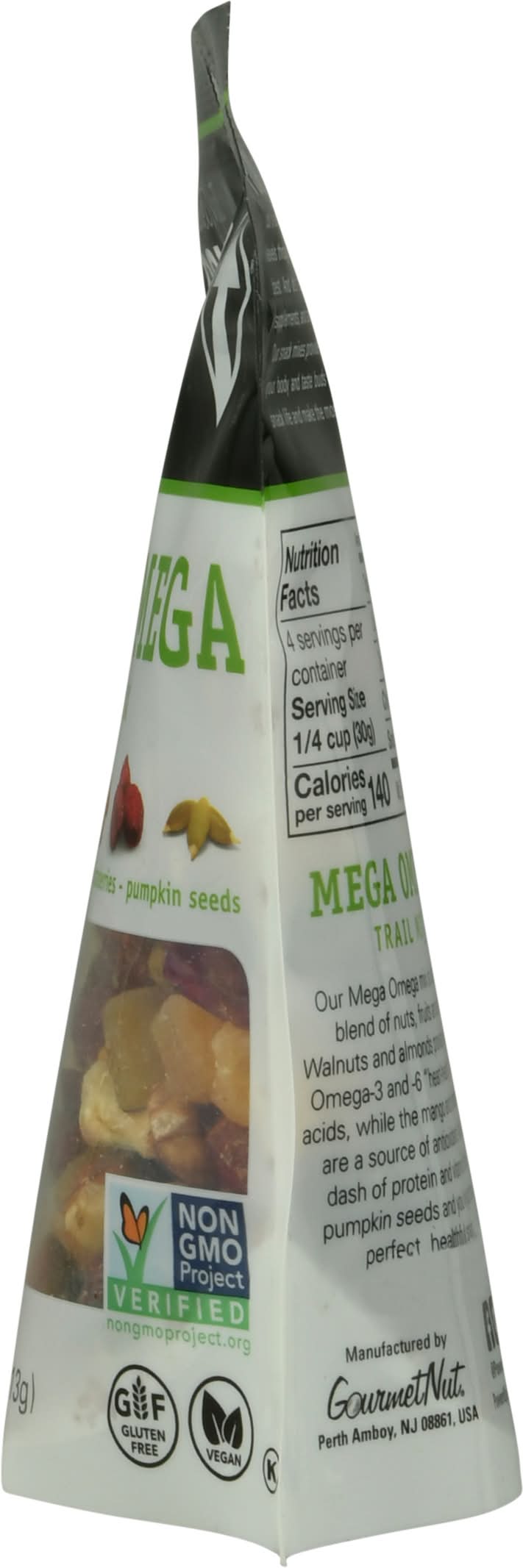 Trail Mix, Mega Omega • Brand: Gourmet nut • gluten-free, vegan, kosher, GMO-free • Number of servings: 4