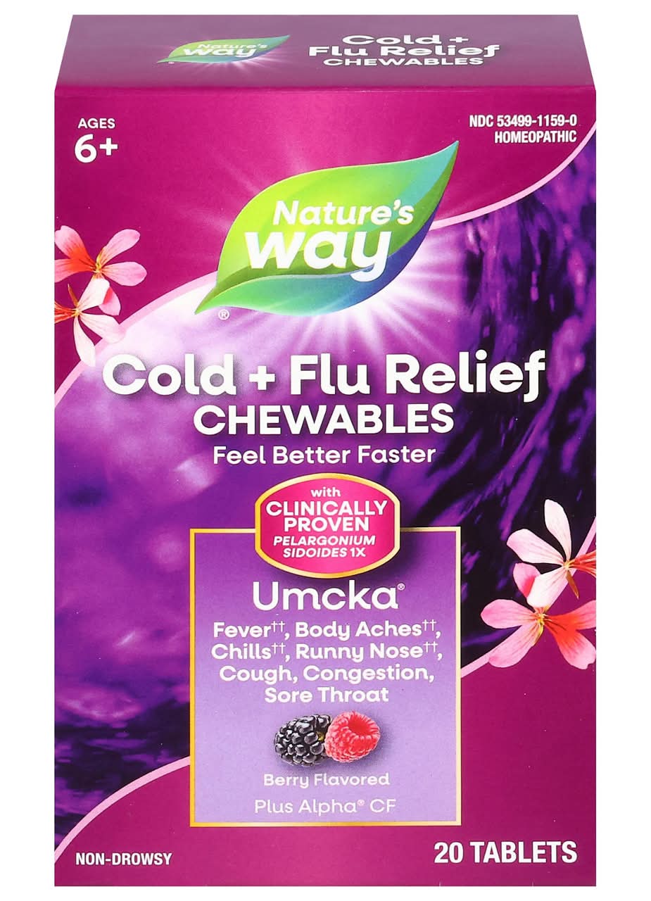 Nature's Way Umcka Cold + Flu, Homeopathic, Berry Flavored, Tablets