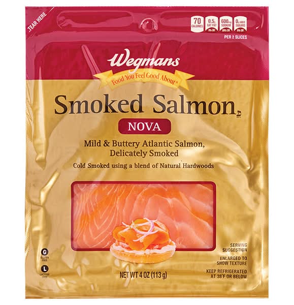 Mild & Buttery Atlantic Salmon, Delicately Smoked. Combining all natural ingredients such as sugar and salt with Atlantic salmon and then cold smoking with a blend of natural hardwoods, our Nova style smoked salmon is very mild in taste and has a very subtle smoke flavor. The salmon was farm-raised in Chile and cold smoked in the USA. Our Food You Feel Good About yellow banner is your shortcut to great-tasting products with no artificial colors, flavors or preservatives.