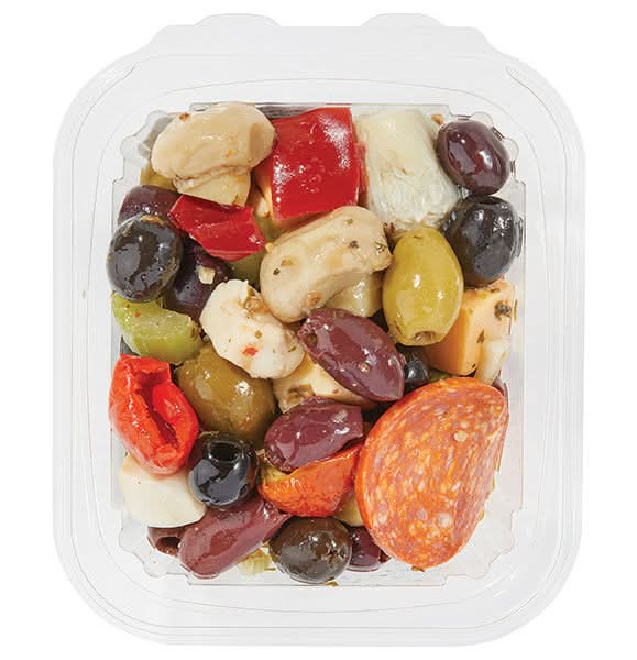 Made fresh in-store. A bold and colorful blend of fresh celery, Provolini salad, assorted olives, marinated artichoke hearts, peppadews, roasted tomatoes, cheese and pepperoni! Created by one of our chefs, Melissa, in Buffalo, NY, this Antipasto Blend is a fan favorite!
