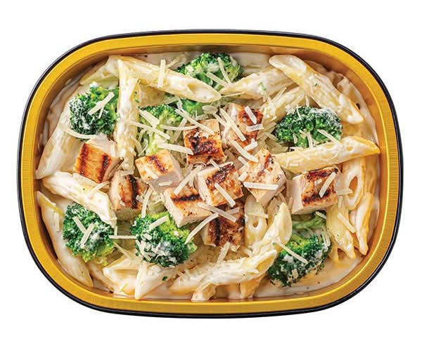 Penne pasta tossed in a creamy Alfredo sauce with broccoli and topped with juicy grilled chicken breast. It's finished with shredded Italian Blend Cheese.{{{NL}}}{{{NL}}}500 calories per serving. 2,000 calories a day is used for general nutrition advice, but calorie needs vary. Additional nutrition information available upon request by contacting Wegmans Food Markets, 1500 Brooks Avenue, Rochester, NY 14624, 1-800-WEGMANS, comments@wegmans.com.