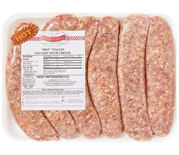 Ingredients: Pork, Water, Salt, Romano Cheese (made from Pasteurized Sheep's Milk, Rennet, Bacterial Culture, Salt), Spices and Parsley.