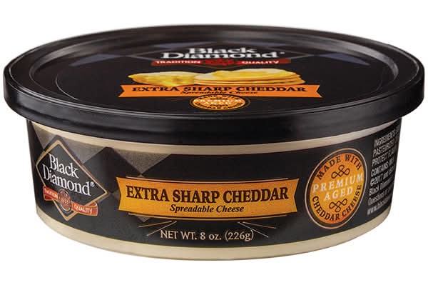 Made with premium aged Black Diamond Cheddar, our Extra Sharp Cheddar spreadable cheese has a full, rich classic cheddar flavor with a creamy texture, in an easy-to-use format for dipping and spreading.