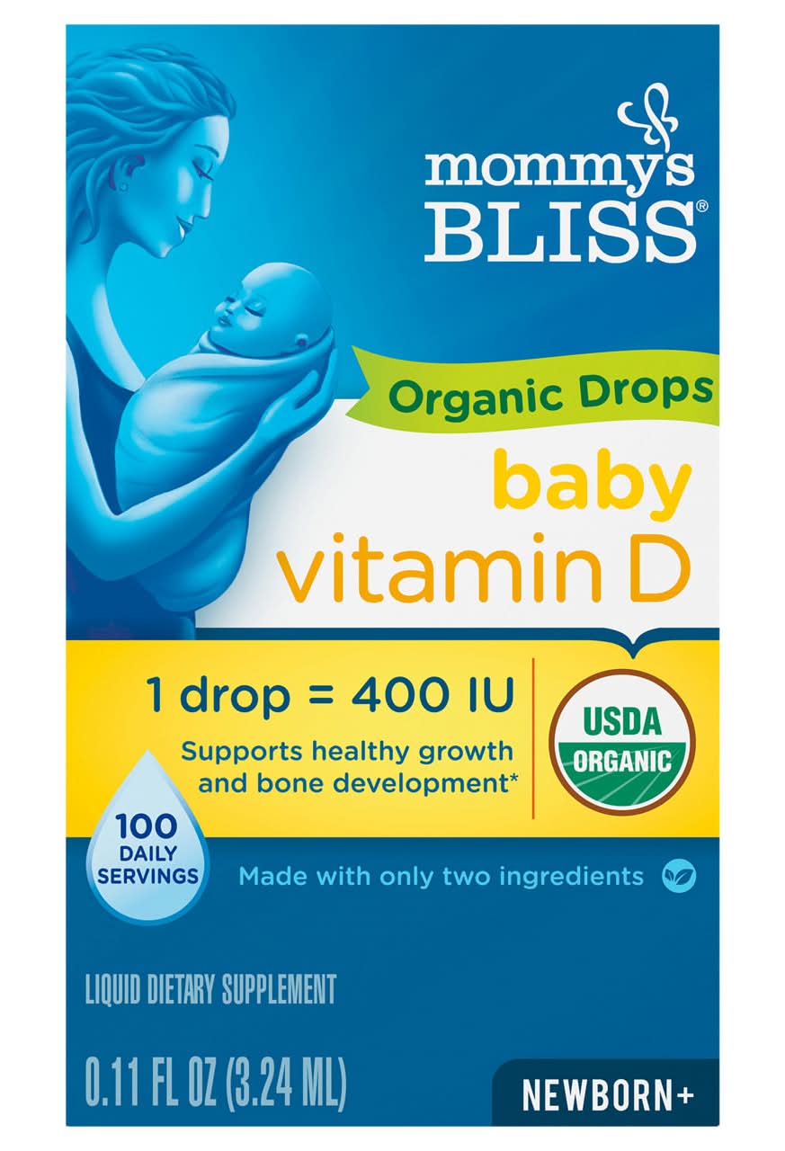 Liquid dietary supplement. Newborn+. No artificial flavors or colors. D3 - 400 iu of vitamin d per serving. quality assurance international. Free of the top 8 allergens: peanuts; wheat; eggs; milk; fish; shellfish; tree nuts; soy. New & improved squeeze bottle. 1 drop = 400 iu as recommended by American academy of pediatrics. Supports: healthy growth. Bone development. Baby vitamin d organic drops provide the recommended amount of vitamin d for healthy growth and bone development for infants who are breastfed. Our family-run company was founded by my mom, driven by compassion for other moms, she created mommy's bliss to safely and naturally bring families back to wellness. Packaging: Reusable