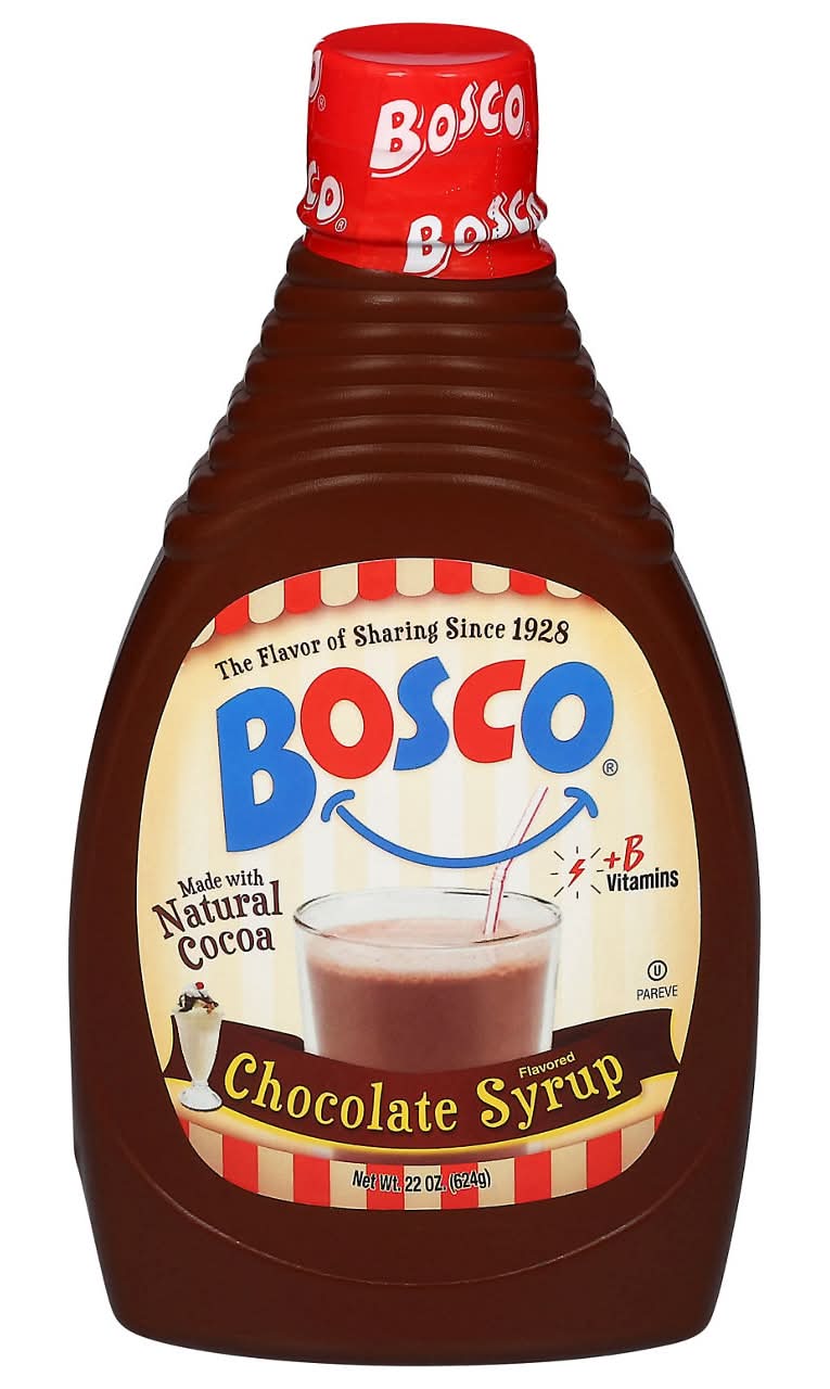It is designed to enhance the taste of ice cream and milk by adding a chocolate flavor. The syrup is fat-free and contains no artificial colors, flavors, or preservatives. It features a natural cocoa flavor with a hint of malt extract. Bosco longstanding product, with its original formula having been established in 1928. It can be used to create a variety of dessert toppings and is also suitable for adding to beverages.