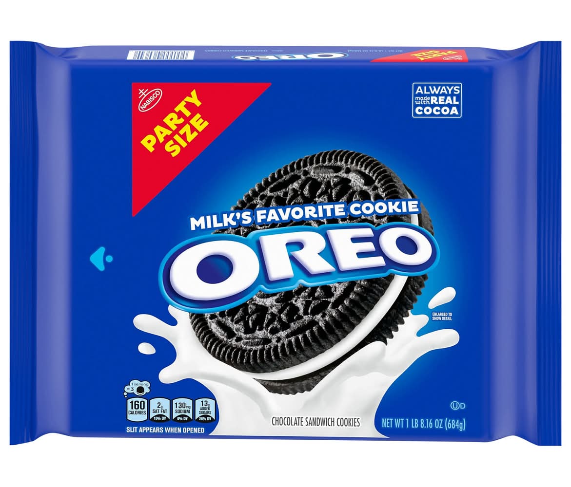 Take a delicious break with America's favorite sandwich cookie for over 100 years. Supremely dunkable, creme filling between two Always made with Real Cocoa chocolate wafers--making them cookie. Original cookies are great for serving as a dessert, with ice cream, as party snacks at your next gathering or for packing sweet snacks with lunch at school or work. You can even mix these bulk snack cookies into your favorite dessert recipe or cheesecake recipe for something a little extra special. The resealable package of cookies with easy-pull tab keeps chocolate cookies fresh and is great for snacking, sharing or traveling. Grab a pack of OREO cookies so you're ready for any snacking occasion: even cookies for Santa! Packaging: Reusable