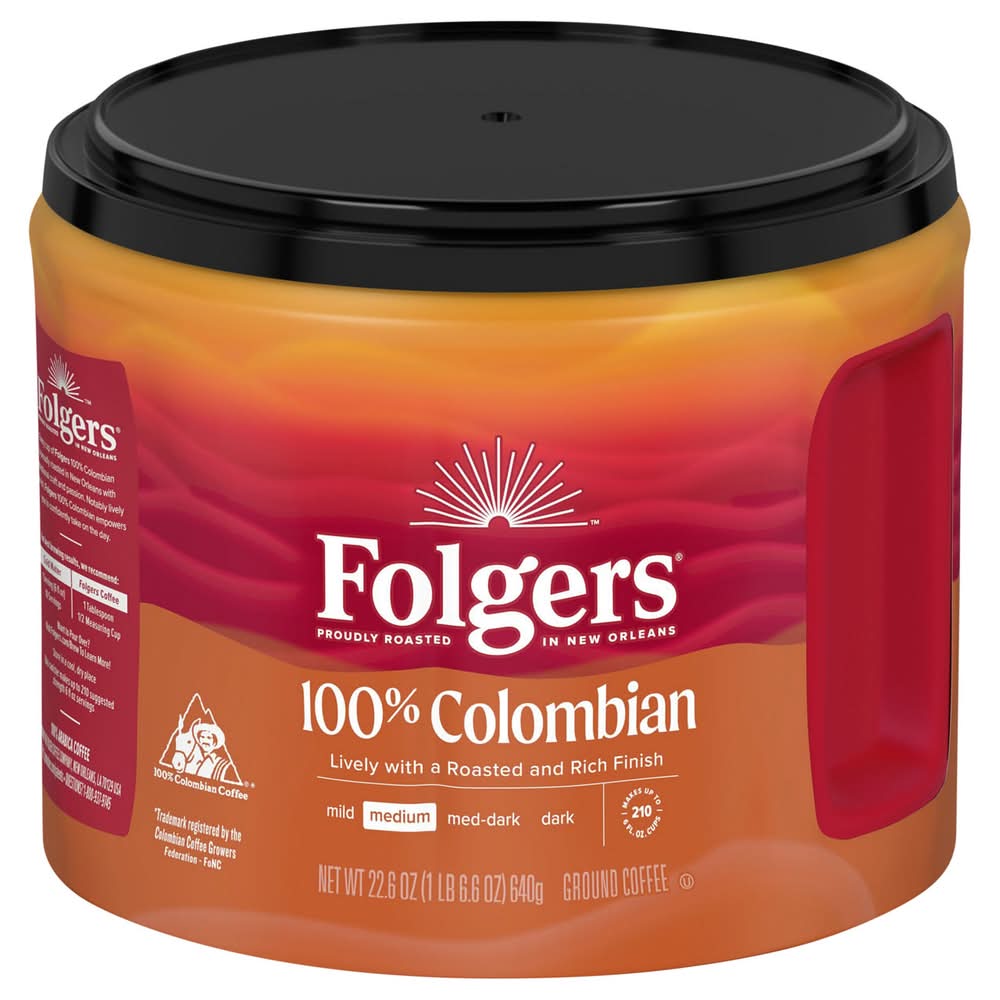Folgers Coffee, Ground, 100% Colombian, Medium