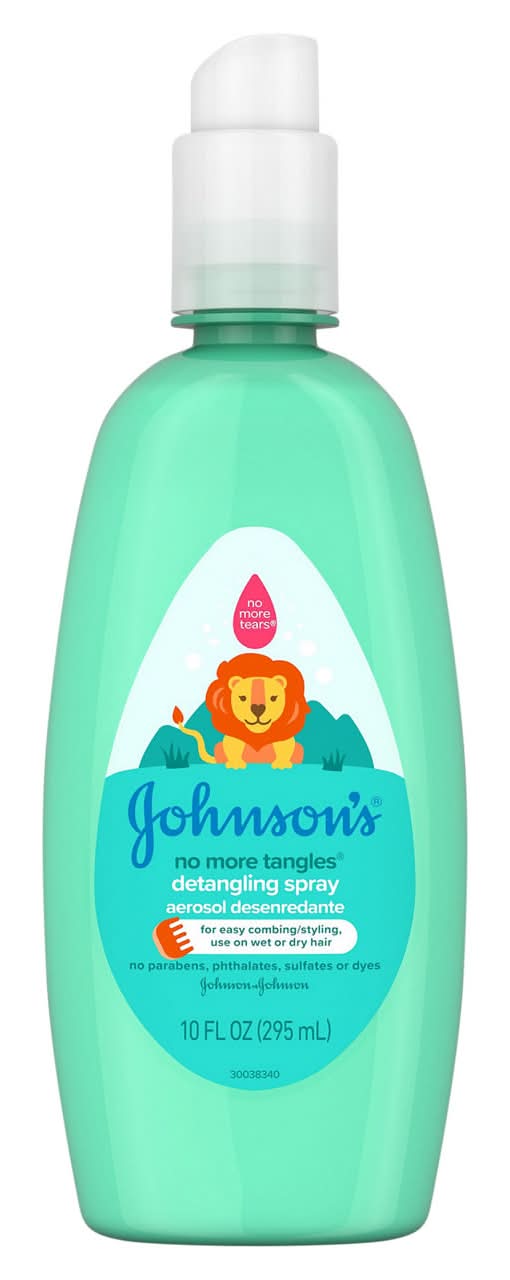 Johnson's No More Tangles Kids Hair Detangling Spray works quickly to help unlock stubborn knots and tangles. Designed to be 100% gentle, this detangling spray for kids and toddlers helps keep your little one's hair soft, smooth, and manageable, making it easier to comb and style. Designed with input from parents like you and formulated to be gentle, never harsh, the No More Tears formula is as gentle to the eyes as pure water and can be used on wet or dry hair. The tear-free hair detangling spray is hypoallergenic and free of parabens, phthalates, sulfates, and dyes. For best results, use with other Johnson's No More Tangles products. Unlock 75 percent more knots* and help keep your child's hair soft, smooth, and tangle-free with Johnson's 3-step routine of cleansing, nourishing, and styling.*vs. shampoo without conditioning agent. This kids' detangling spray is designed to meet or exceed the top internationally recognized regulatory standards.