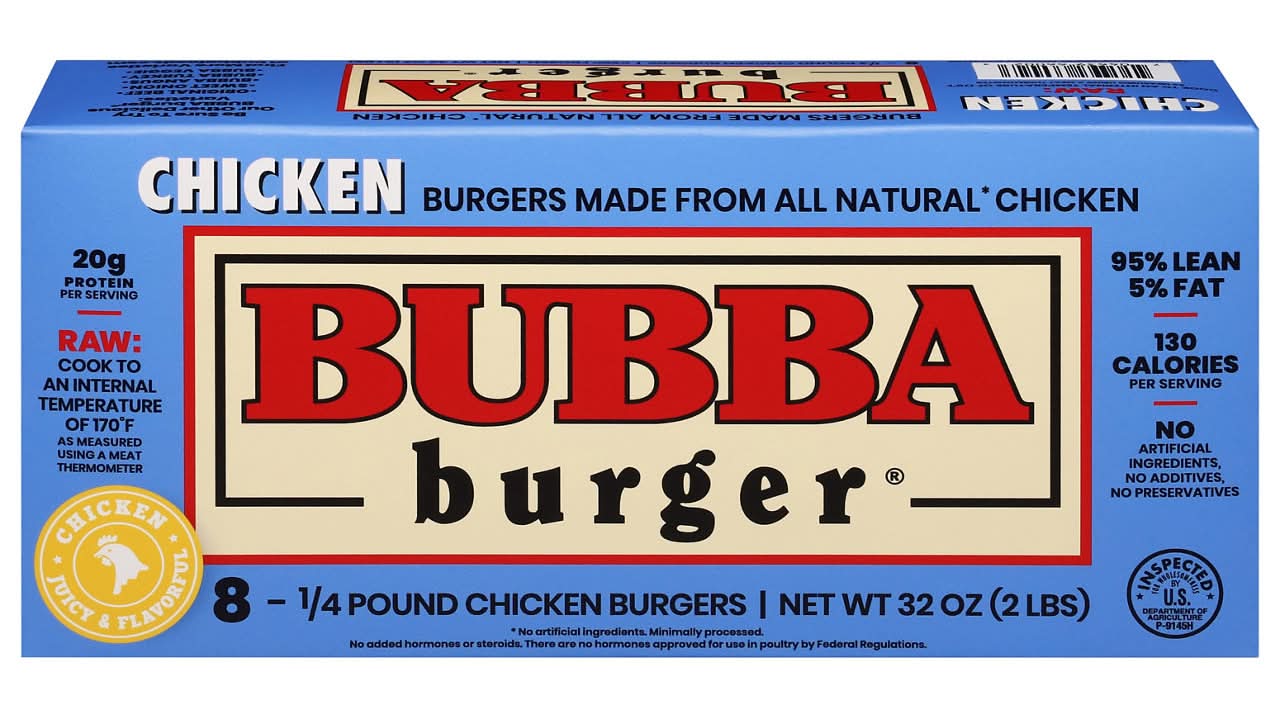 There are no hormones approved for use in poultry by federal regulations. Our Story: The story behind Bubba burgers - a trusted American tradition. What you're holding is a box from America's No. 1 frozen burger brand (per total US IRI Data). Using the experience of three generations, Walter Bubba Eaves created the Bubba burger over 25 years ago. Our Bubba burgers give you the convenience you need with the highest quality you crave - using all natural (no artificial ingredients. Minimally processed) chicken with no antibiotics important to human medicine. The secret to our success is as simple as our ingredients and the convenience of cooking every burger straight from the freezer. We are devoted to bringing you a delicious, flavor-packed burger with every bite. That's why. You'll never bite a burger better than a Bubba! You'll never bite a burger better than a Bubba! Juicy and flavorful. Frozen for your convenience - no thawing. Made in the USA. Packaging: Reusable