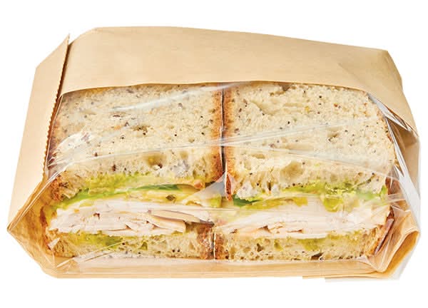 Ingredients: Keep Refrigerated. - - Ingredients: Turkey (Turkey Breast Meat, Turkey Broth, Dextrose, Vinegar, Salt, Potassium Chloride, Sodium Phosphate, Vinegar Powder, Sugar, Sea Salt, Flavoring, Water. Rubbed with: Sugar, Salt, Paprika [color], Spices, Dehydrated Parsley, Extractive of Turmeric [color]), Organic Six Seed Bread (Organic Wheat Flour, Water, Organic Honey, Organic Pumpkin Seeds, Organic Sunflower Seeds, Organic Canola Oil, Organic Flaxseed, Organic Sesame Seeds, Organic Poppyseeds, Organic Hulled Millet, Salt, Organic Molasses, Yeast, Organic Malted Barley Flour), Havarti Cheese (Pasteurized Cow's Milk, Salt, Cultures, Microbial Enzyme, Annatto [color]) or Swiss Cheese (Pasteurized Part-Skim Milk, Cheese Culture, Salt, Enzymes), Guacamole (Avocado, Tomatoes, Onions, Cilantro, Jalapeño Pepper, Lime Juice, Salt), Spicy Sauce (Mayonnaise [Soybean Oil, Water, Salted Egg Yolks {Egg Yolk, Salt}, Sugar, Distilled Vinegar, Salt, Lemon Juice Concentrate, Xanthan Gum, Egg Powder, Paprika Oleoresin {For Color}], Sriracha Sauce [Jalapenos, Water, Sugar, Salt, Distilled Vinegar, Garlic, Garlic Powder, Xanthan Gum, Citric Acid, Paprika Oleoresin {For Color}], Soybean Oil, Water, Garlic Puree [Garlic, Citric Acid], Agave, Lemon Juice Concentrate, Sesame Oil, Spice, Natural Flavor), Lettuce, Salt.