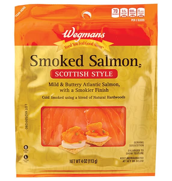 Mild & Buttery Atlantic Salmon, with a Smokier Finish. Cold Smoked using a blend of Natural Hardwoods. Cold Smoked in USA. Farm Raised in Chile. Our Food You Feel Good About yellow banner is your shortcut to great-tasting products with no artificial colors, flavors or preservatives.