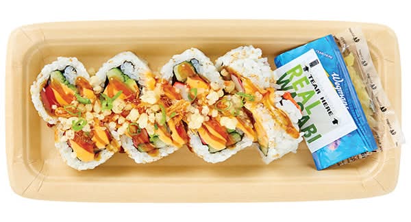 Our customer favorite California Roll topped with spicy sauce, teriyaki sauce, tempura crisps and fried shallots. 8-pc.{{{NL}}}{{{NL}}}290 calories per serving. 2,000 calories a day is used for general nutrition advice, but calorie needs vary. Additional nutrition information available upon request by contacting Wegmans Food Markets, 1500 Brooks Avenue, Rochester, NY 14624, 1-800-WEGMANS, comments@wegmans.com.