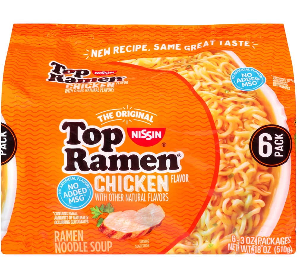 Nissin Top Ramen Ramen Noodle Soup, Chicken Flavor, 6 Pack