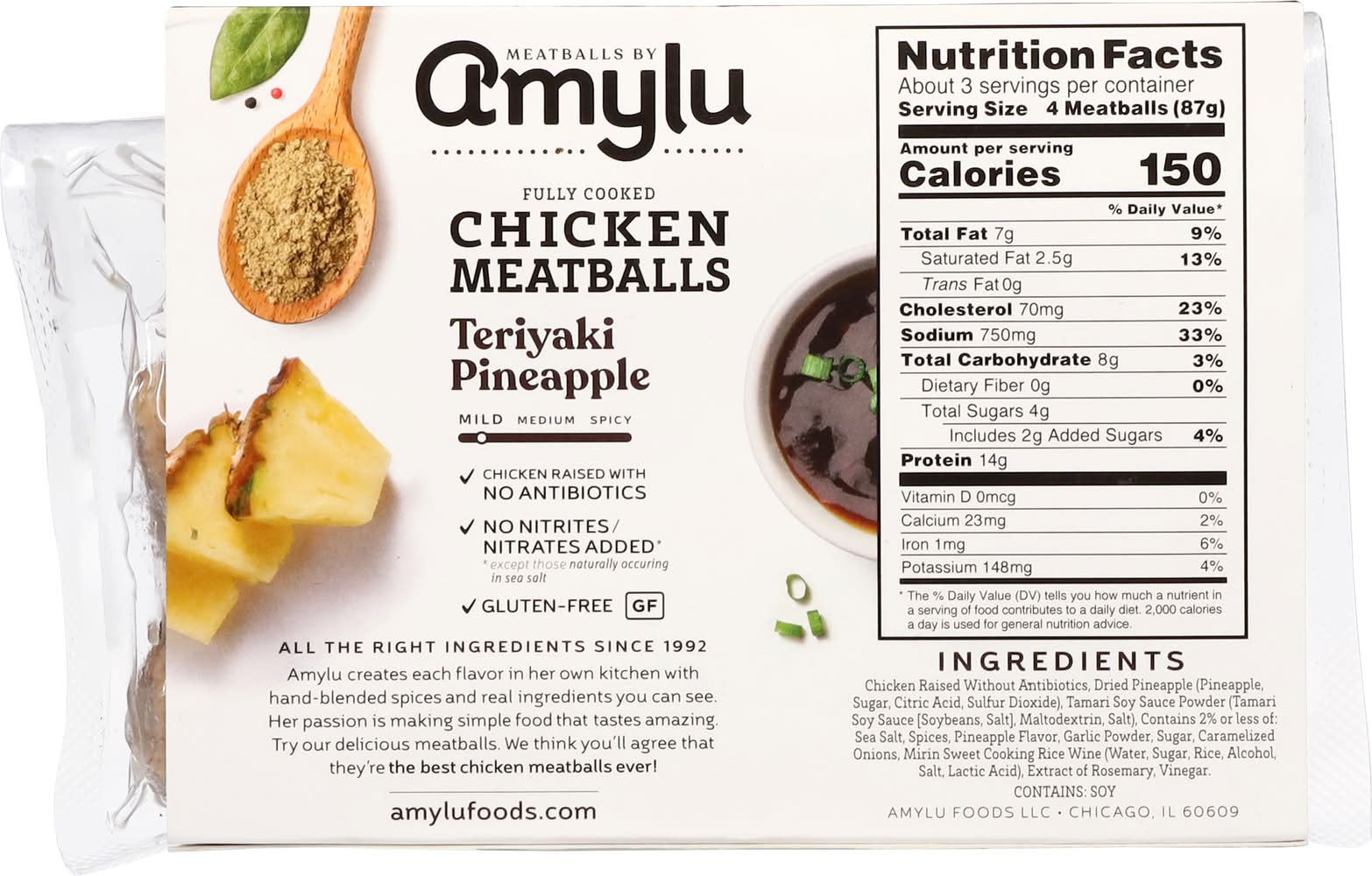 Amylu Foods Chicken Meatballs, Teriyaki Pineapple (10 oz)