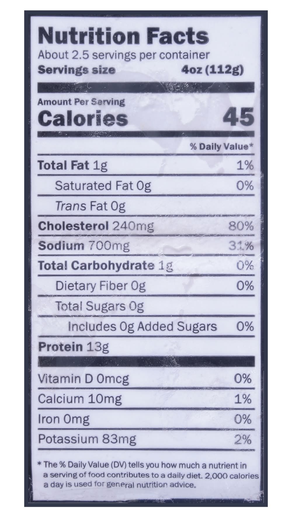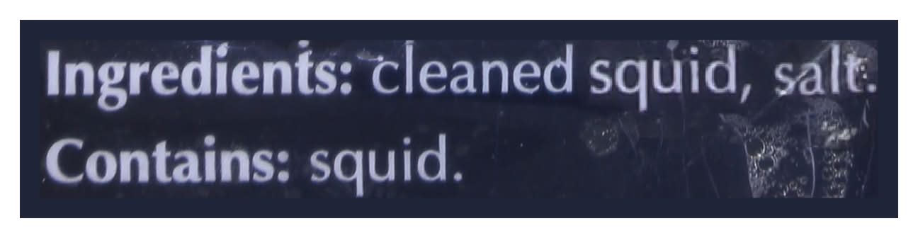 Ingredients: Cleaned Squid, Salt Contains: Molluscan Shellfish, Squid (Calamari)