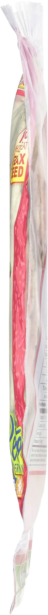 Ingredients: Water, Modified Wheat Starch, Wheat Protein, Cellulose, Whole Wheat, Contains 2% or Less of the Following: Extra Virgin Olive Oil, Spinach, Salt, Onion and Garlic Powder, Spice, Xanthan Gum, Ground Flax Seed, Aluminum-Free Leavening (Sodium Bicarbonate, Corn Starch, Monocalcium Phosphate), Preservatives (Calcium Propionate, Sorbic Acid), Dough Conditioner (Fumaric Acid, Mono-and Diglycerides, Sodium Metabisulphite) Contains: Wheat, Corn