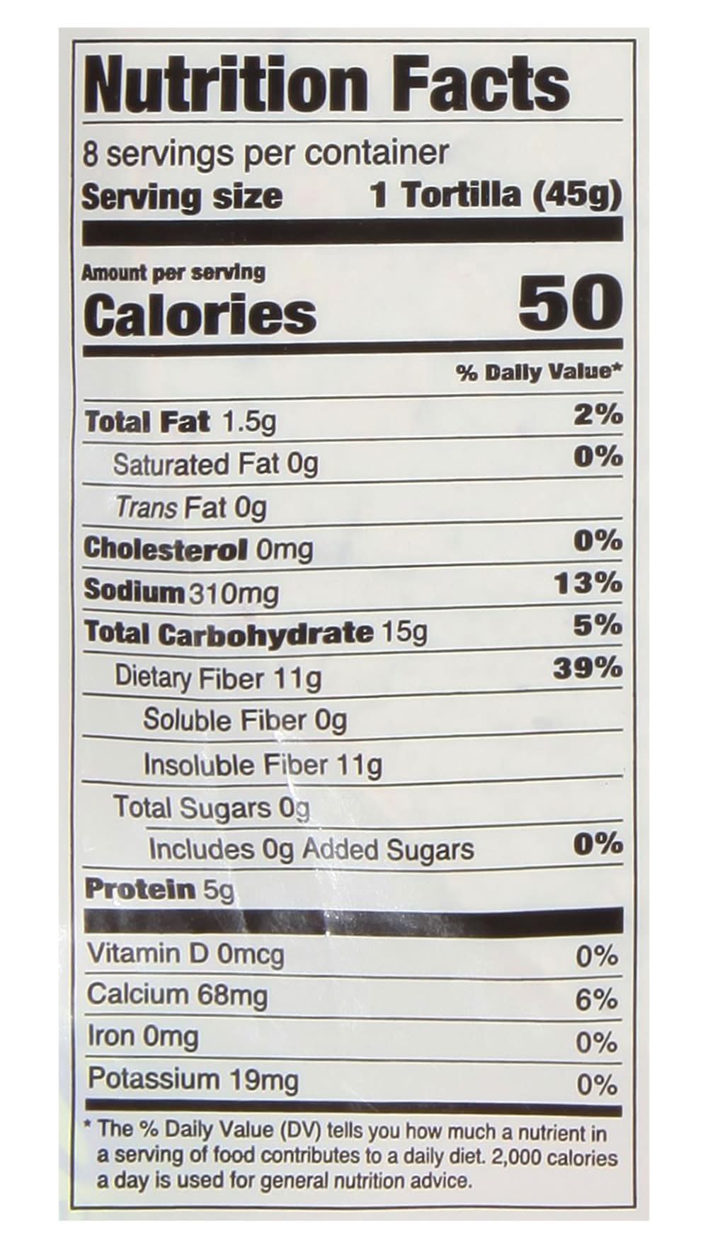 Tortilla Wraps, High Fiber, Spinach & Herbs, Carb Lean • Ole Mexican Foods, Inc., Norcross,CA,30071 • Packaging: Reusable