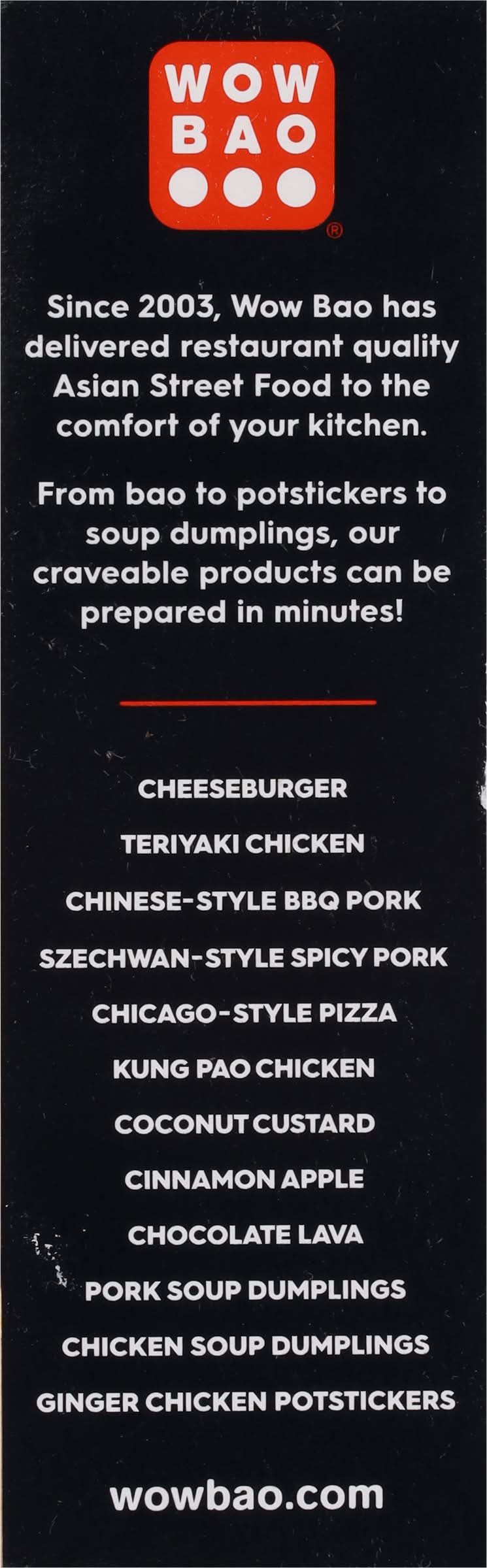 Directions for use: Directions: Heating Instructions: For best results, thaw bao in refrigerator for 8 hours prior to cooking. Microwave: place 1 thawed bao on a microwave safe plate. Cover with damp paper towel. Microwave on high for 30 seconds (From frozen: add up to 1 minute). Carefully remove bao from microwave. Allow to cool slightly before enjoying. Stove Top Steam: Fill pot with 1/4 cup water, rest colander inside pot, and cover. Place pot over high heat and bring water to a boil. Add 1 to 4 thawed bao to colander. For best results ensure bao do not touch each another nor the pot while cooking. Cover and steam for 6 minutes (From frozen: add 4 minutes). Remove bao from heat. Allow to cool slightly before enjoying. Keep frozen. Storage recommendation: Keep frozen.