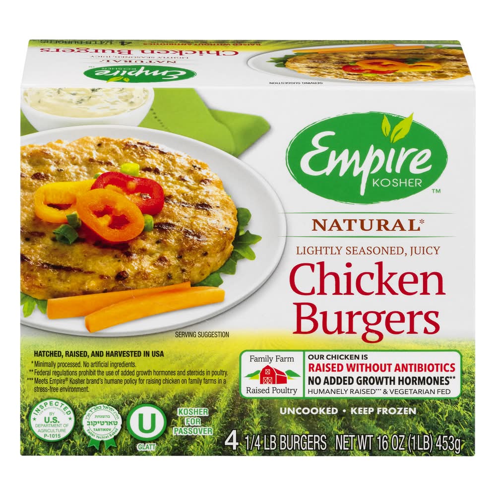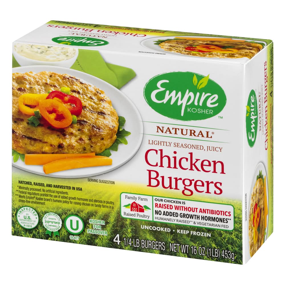 Empire Kosher Natural Lightly Seasoned Juicy Chicken Burgers (1 lbs)