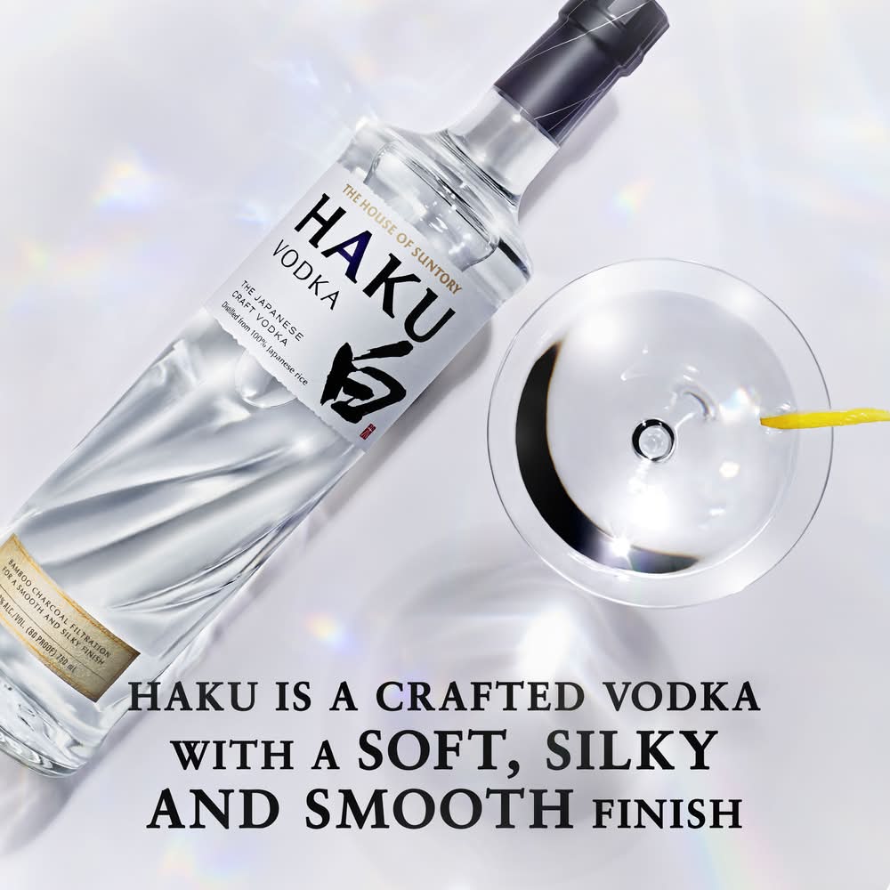 Treat your palate to Haku, the Japanese Craft Vodka meticulously crafted by the House of Suntory, perfected through over a century of distillation mastery. With its soft, silky, and smooth finish, Haku offers a flavor that's truly unparalleled. Crafted with authentic Japanese ingredients -- made from 100% Japanese white rice and filtered through bamboo charcoal. Haku begins its journey through fermentation with rice koji to create a rich, flavorful mash. It's then uniquely distilled through pot stills to create a rice spirit, and then distilled a second time through two unique processes, each one enhancing its character. The spirit is meticulously blended and filtrated in the Suntory Liqueur Atelier at Osaka Plant for a smooth, impeccably clean flavor. Savor this smooth vodka by mixing with vermouth and plenty of ice to create the ultimate martini or mix with club soda for a refreshing vodka soda. Alcohol by volume: 40%